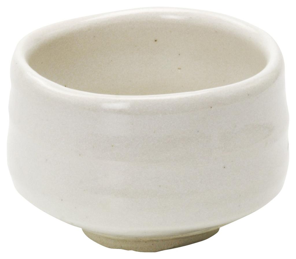 Mino ware matcha bowl, half-cylindrical, Shiro Shino, white, made in Japan, 135980
