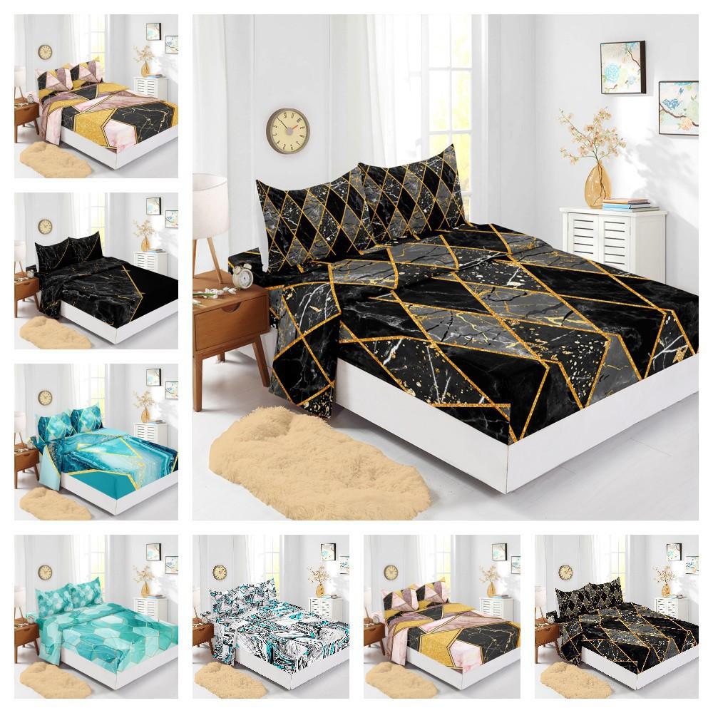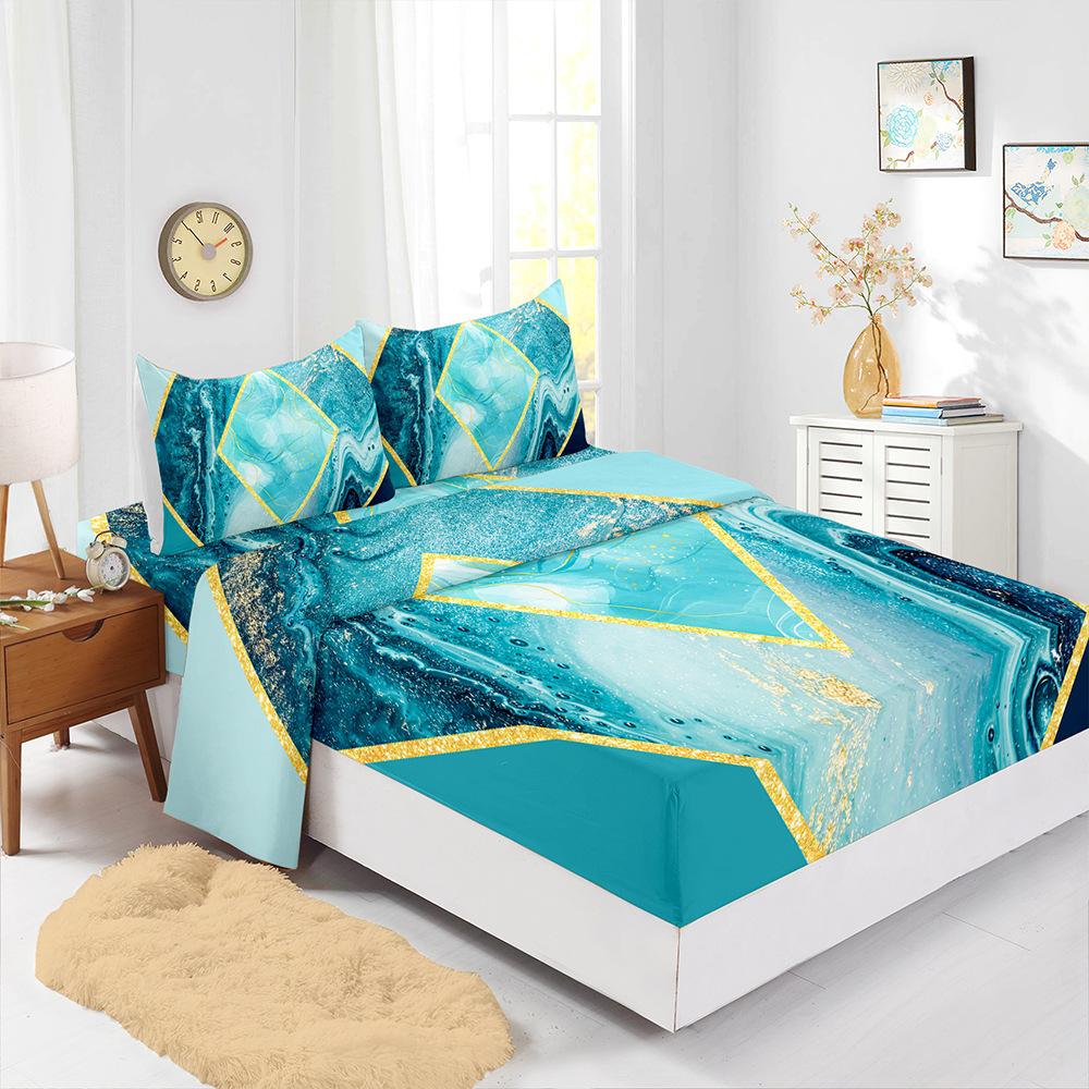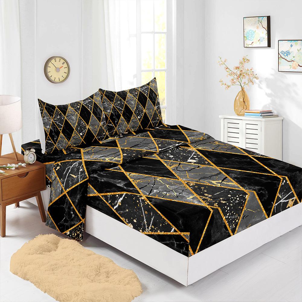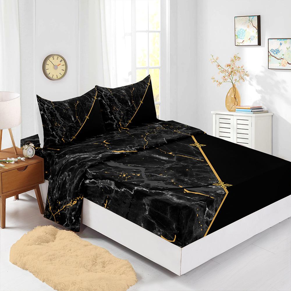 Four-Piece Mattress Marble Pattern Bedding 3D Digital Printing Kit Mattress Protective Cover