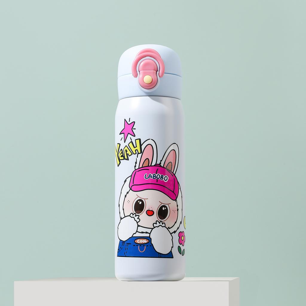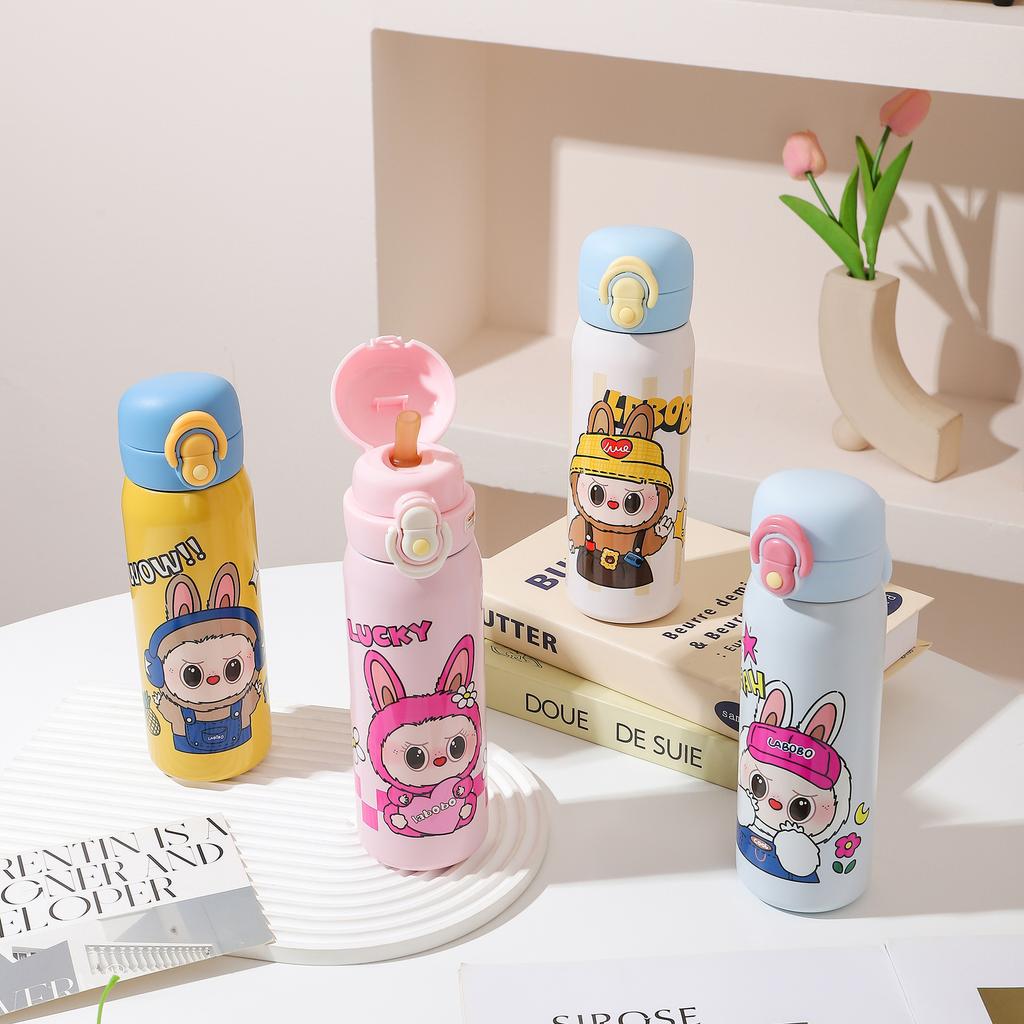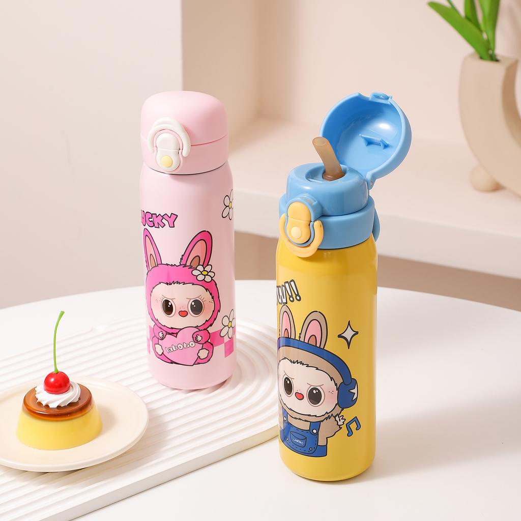 Термос-кружка для кошек 316 пищевой марки, Портативная чашка для воды с двойной соломинкой для питья, Мультяшная чашка с откидной крышкой для питья напрямую