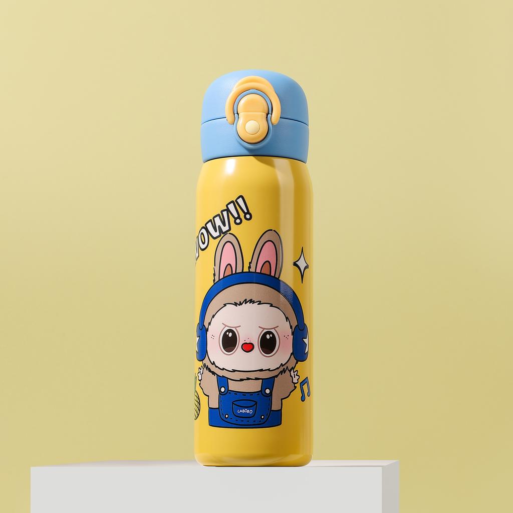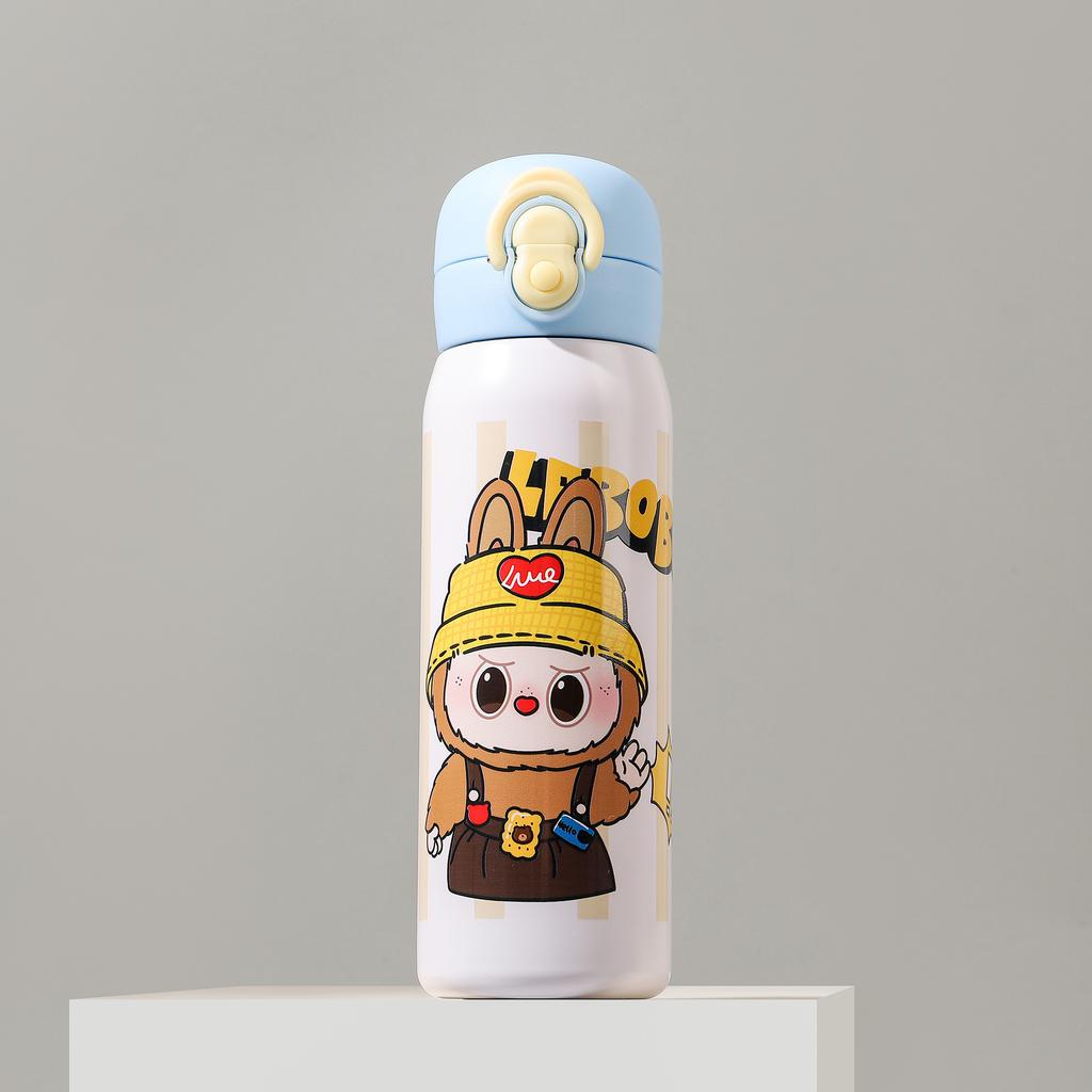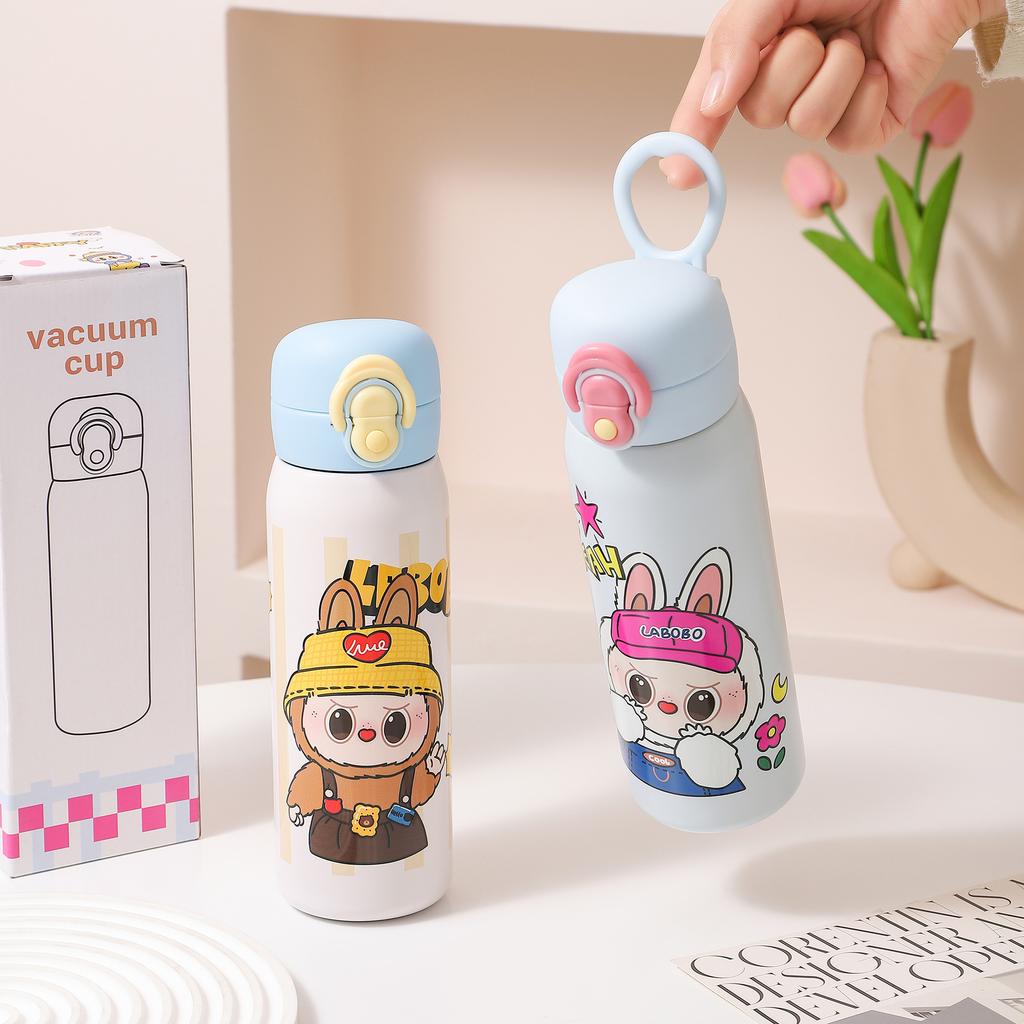 Термос-кружка для кошек 316 пищевой марки, Портативная чашка для воды с двойной соломинкой для питья, Мультяшная чашка с откидной крышкой для питья напрямую
