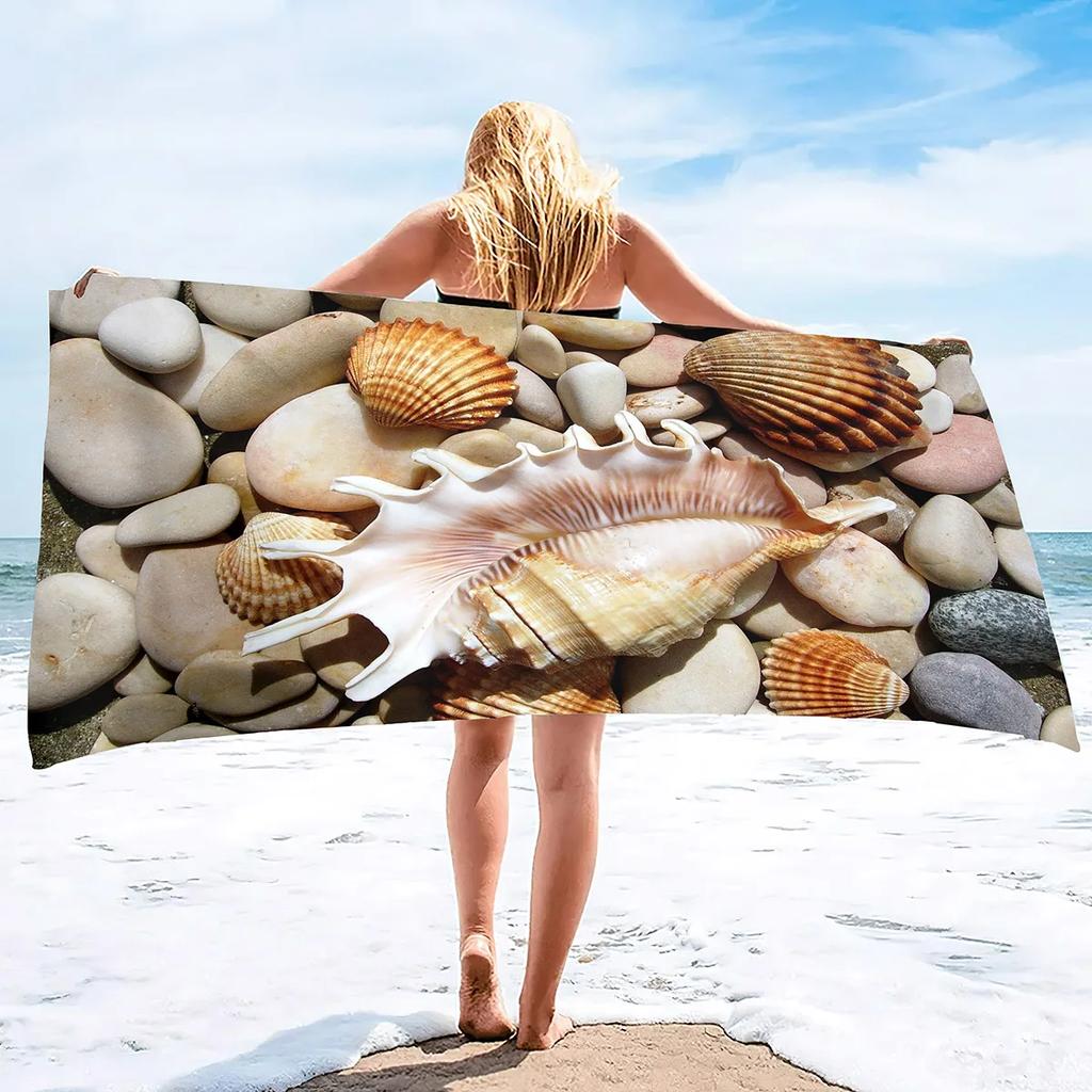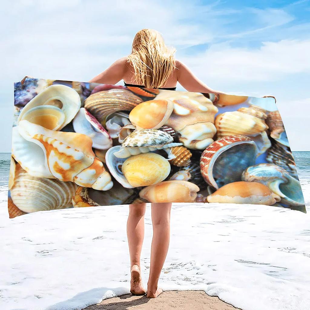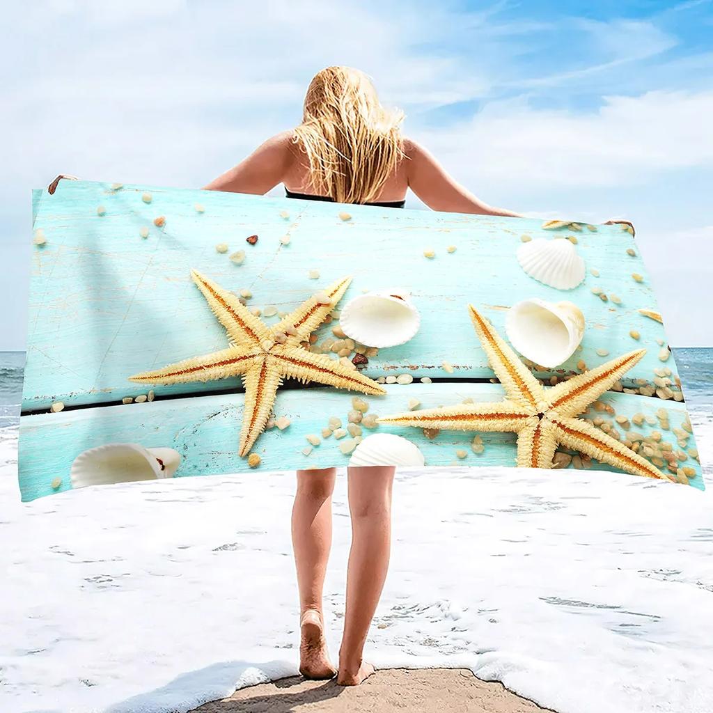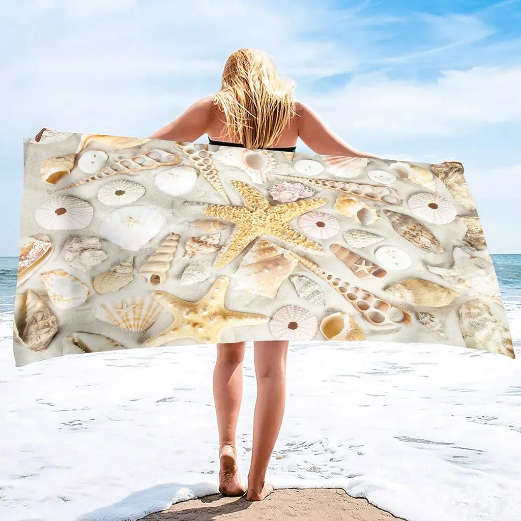 Пляжное Ракушка Морская звезда Полотенце Летнее Ванная комната Мягкое Впитывающее Многоцелевое Быстросохнущее Пескостойкое