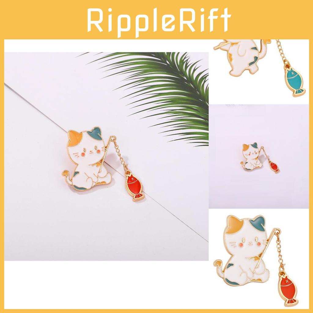 Уникальная металлическая брошь в виде животных с игривым дизайном кошки и рыбы, идеально подходящая для украшения свитера и куртки