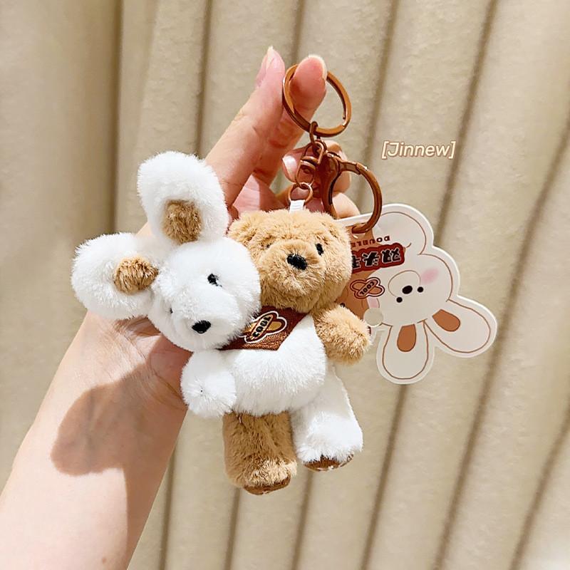 Мягкий и очаровательный двухсторонний плюшевый брелок в виде медвежонка и кролика с молочным чаем для детей