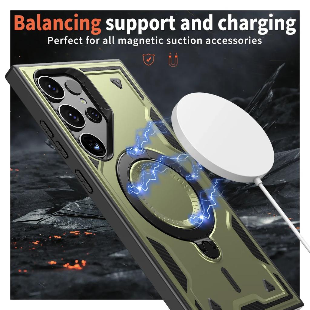 Для Samsung Galaxy S22 Ultra S23 FE S24+ S25 Plus Чехол Военный Противоударный Вращающаяся на 360° Подставка Рамка из ТПУ Пластиковая Накладка на Телефон