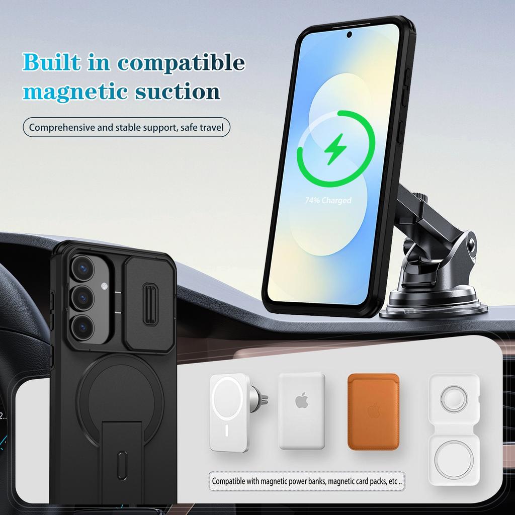 Магнитный чехол-слайдер 2-в-1 для телефона Samsung Galaxy S25 FE 5G, мягкая ТПУ рамка, жесткая пластиковая защитная задняя крышка, Fundas
