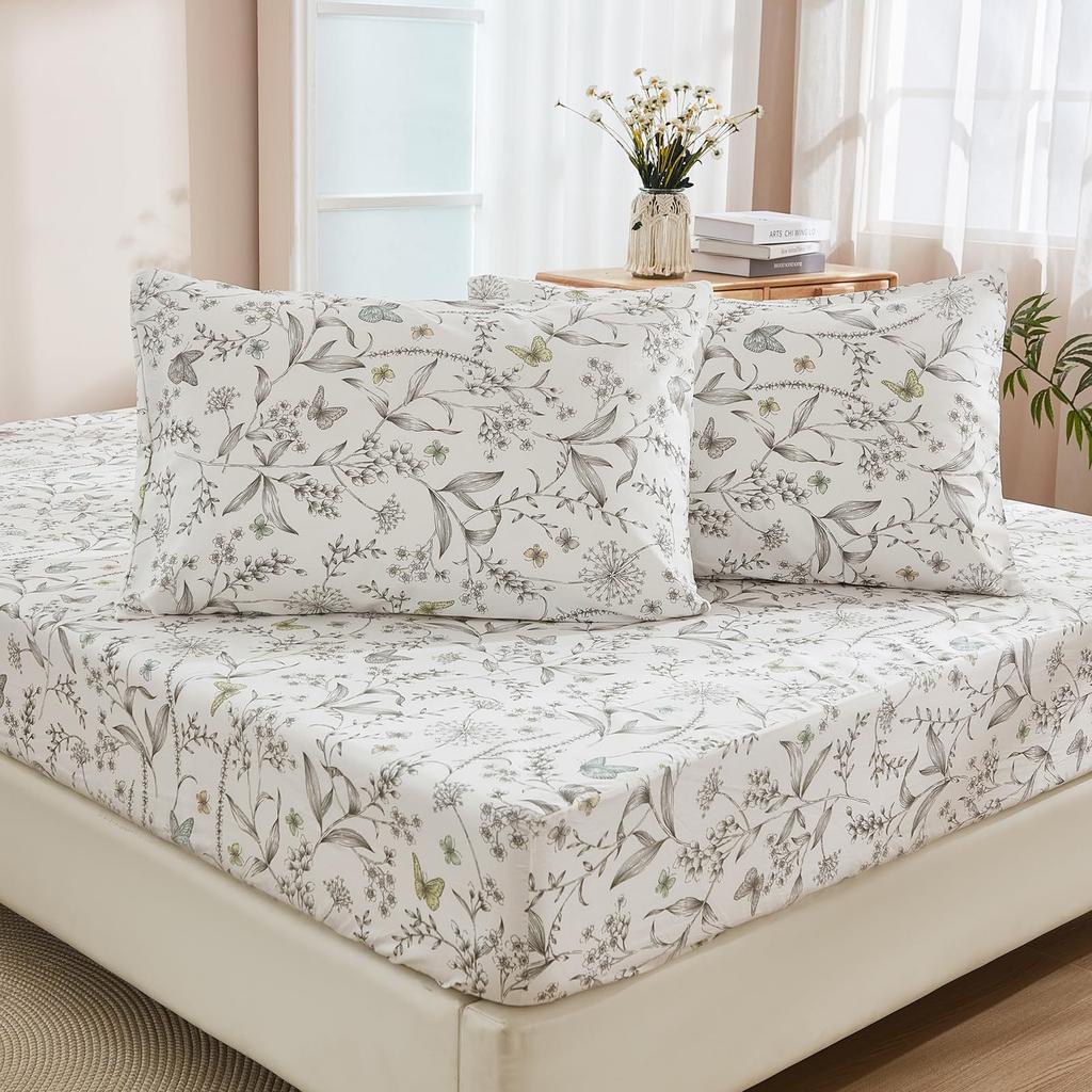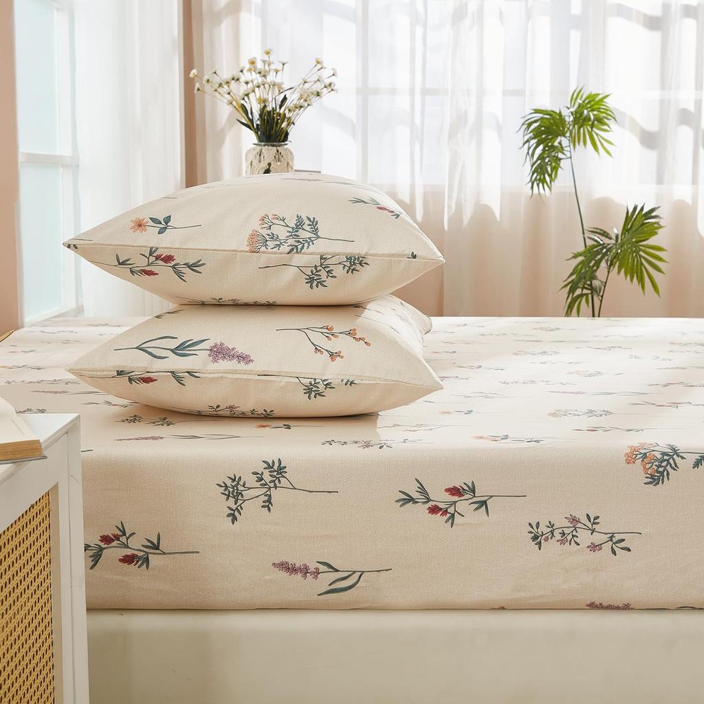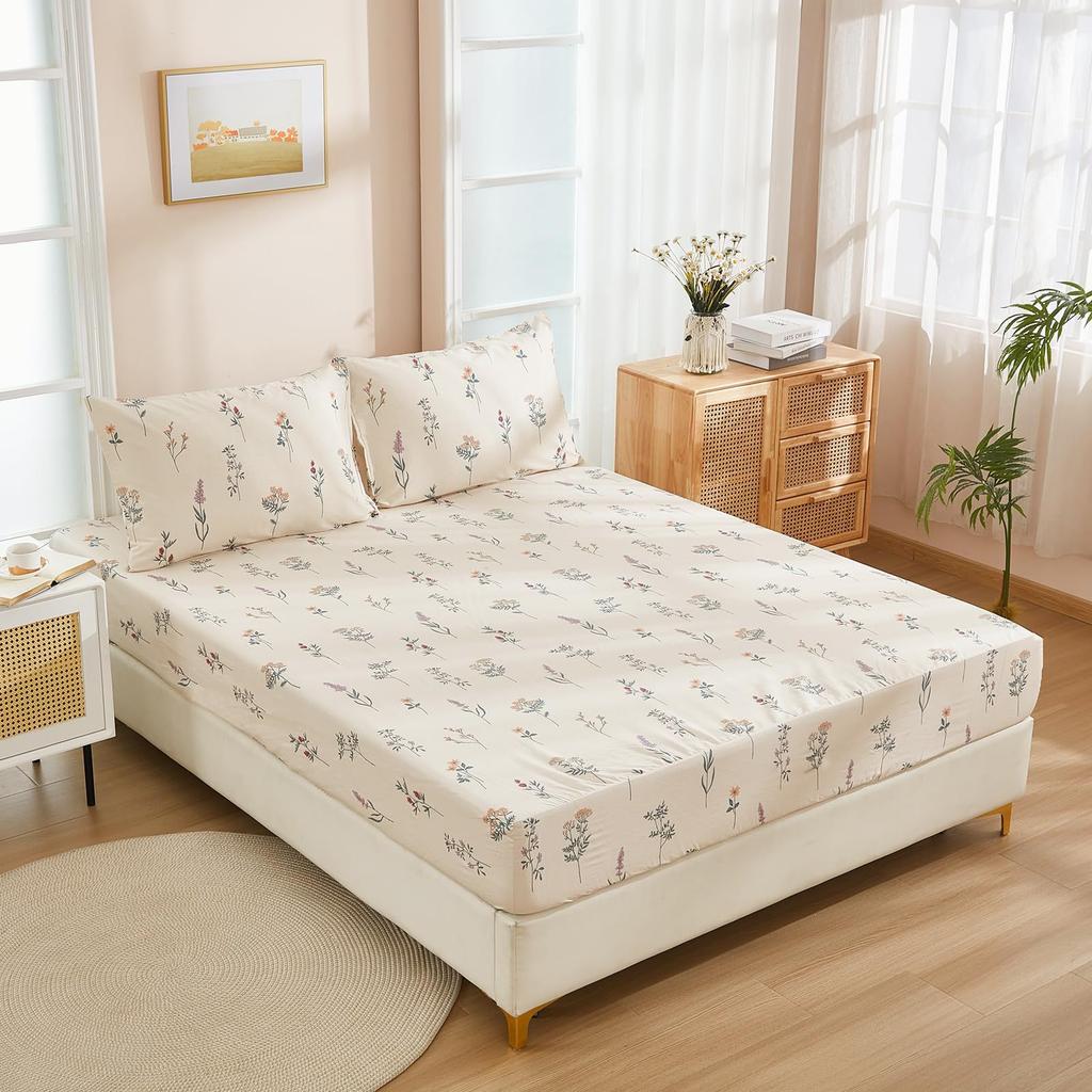 Простой и свежий узор из цветов и растений Шапка на кровать из трех частей Комплект постельного белья с цифровой печатью Детский и взрослый