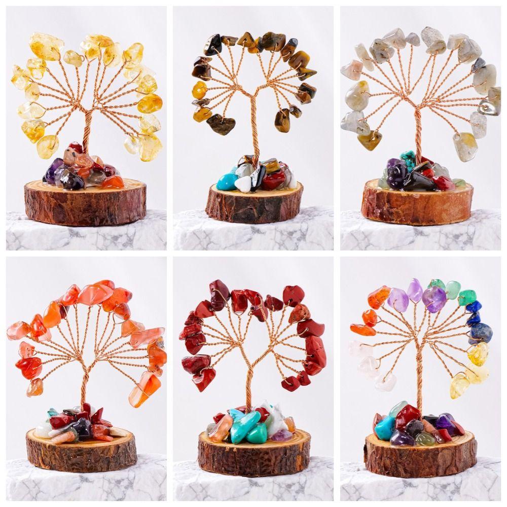 Multicolor Crystal Wishing Tree Copper Wire Crystal Decorative Trees Fortune Tree Figurine Desk