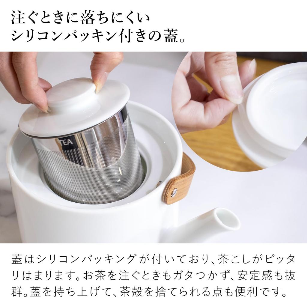 Smith & Shoe Arrosoir White Porcelain Teapot with Strainer, Ceramic Teapot (1L)