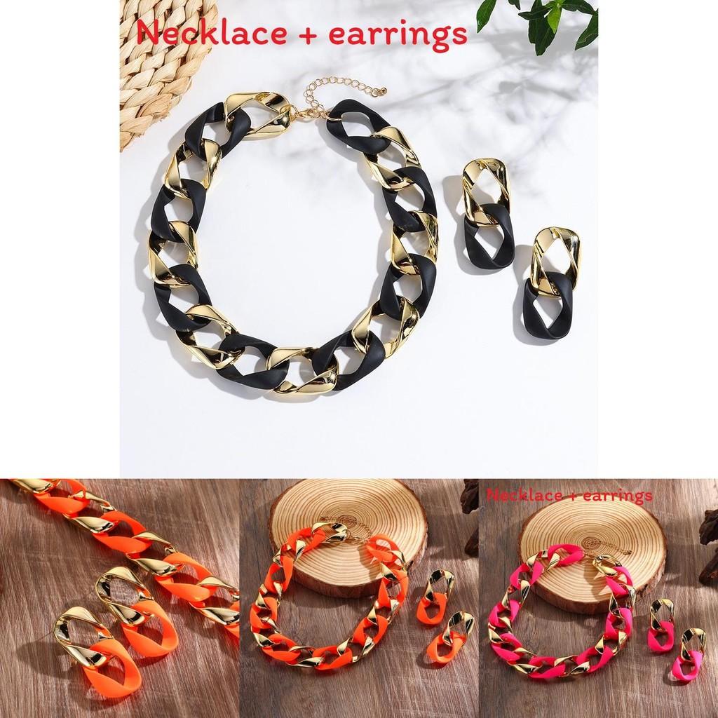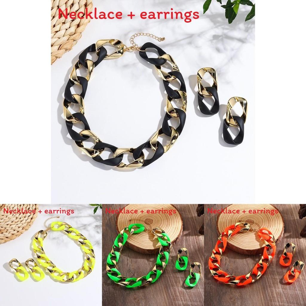 This stylish jewelry set features a vibrant fluorescent design with a twisted, pattern, including a necklace and earrings made of durable plastic and resin. The necklace measures approximately 20 inches with a standard chain, and the alloy pendants showcase floral and geometric motifs. Perfect for adding a pop of color to casual or fashion-forward outfits during fall 2024. Easy to maintain, simply wipe with a damp cloth to keep the bright colors and polished finish.