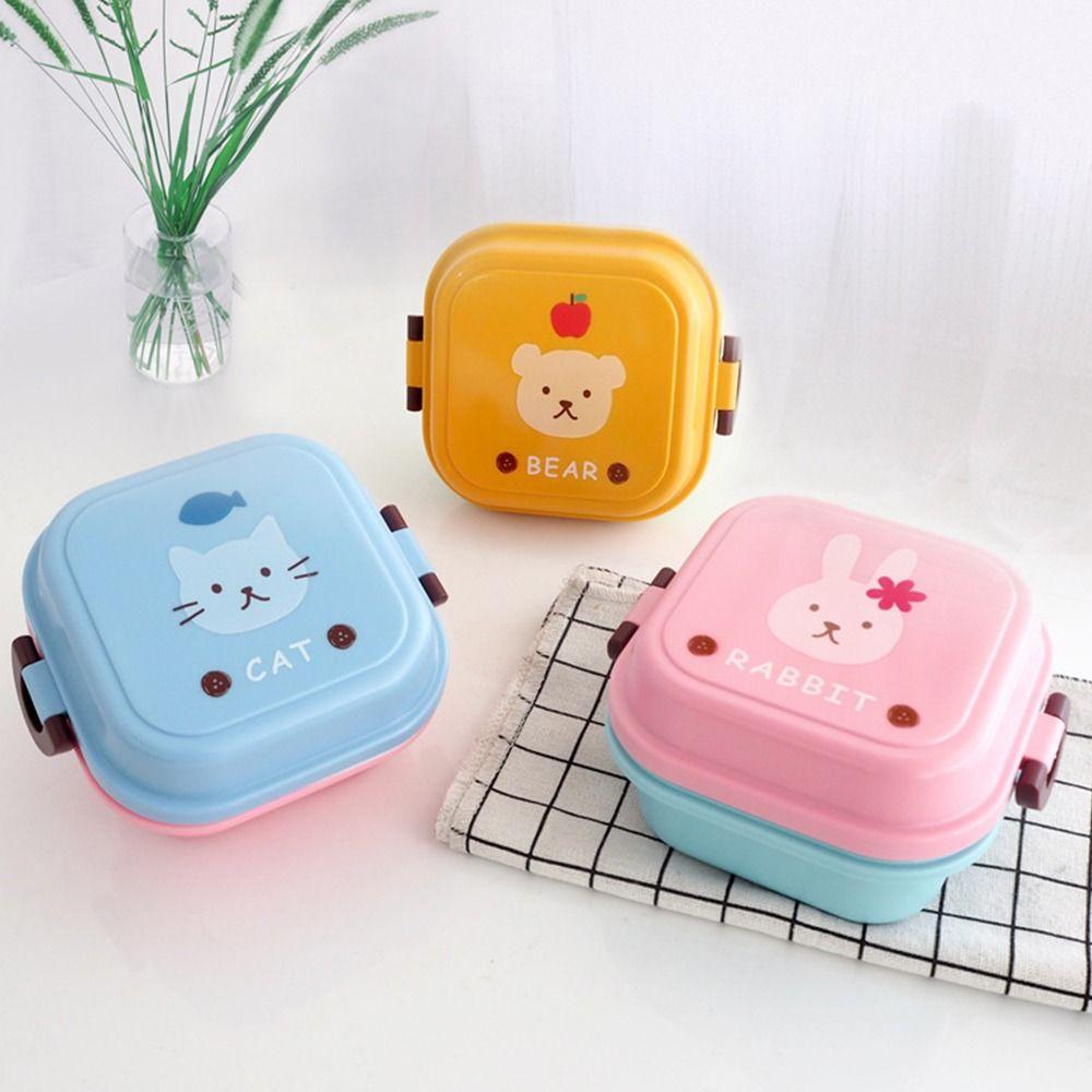 Layer Square Animal Plastic Children Fruit Food Storage Box Tableware Fresh Keeping Box Lunch Box