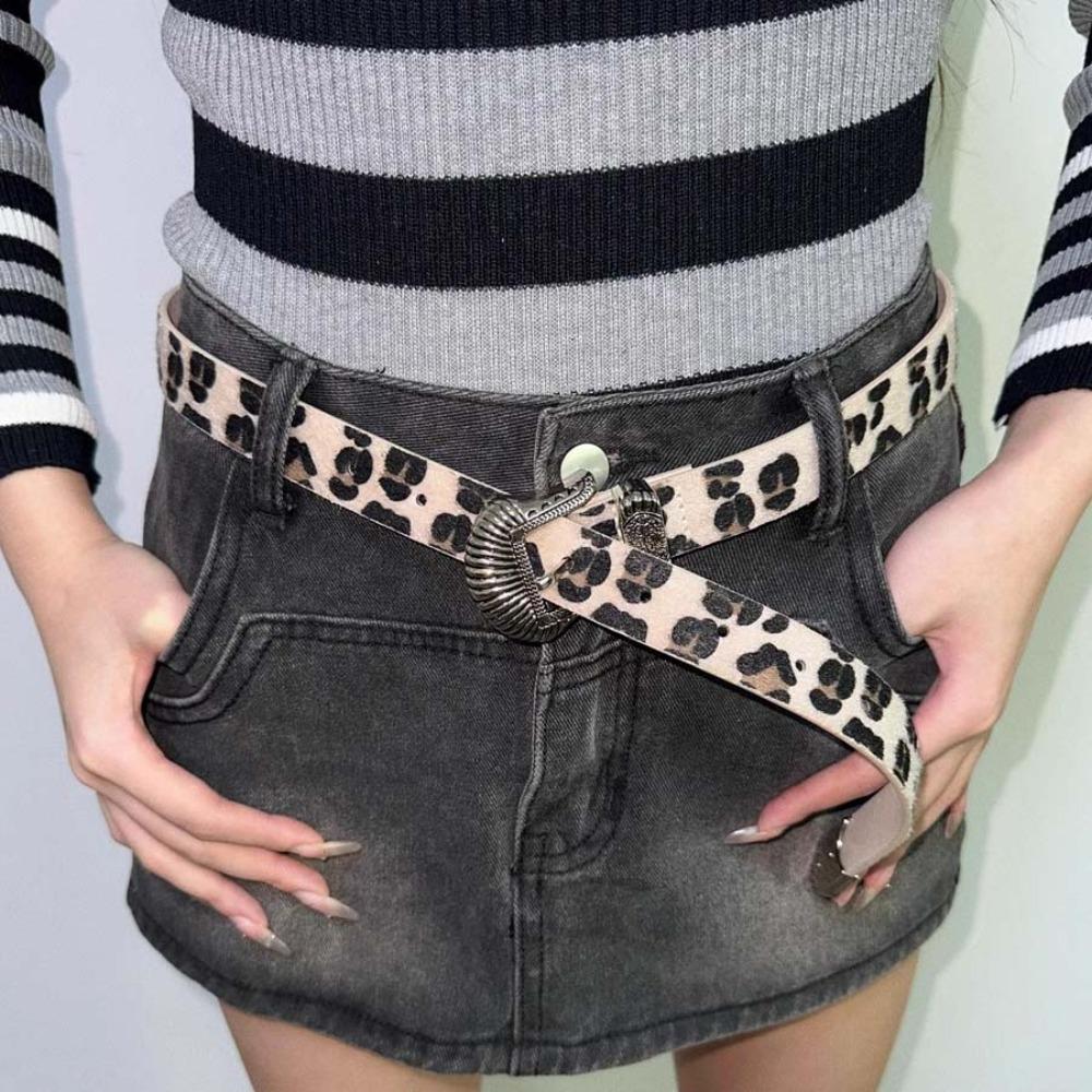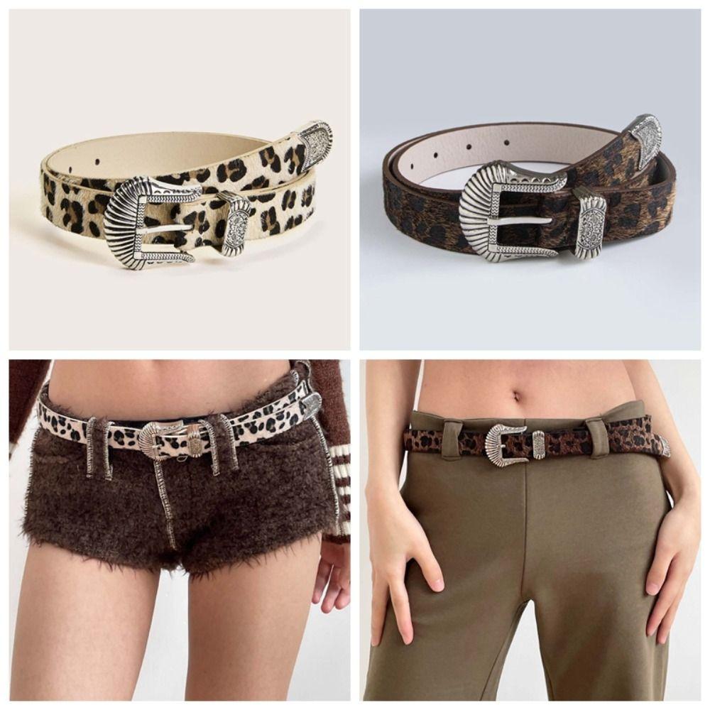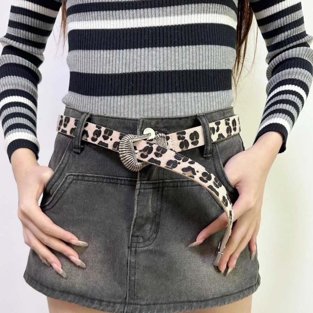 Цинк Цинковый сплав Резная пряжка Ремень Y2K ПУ Винтажный пояс Модный ремень с леопардовым принтом Фестиваль