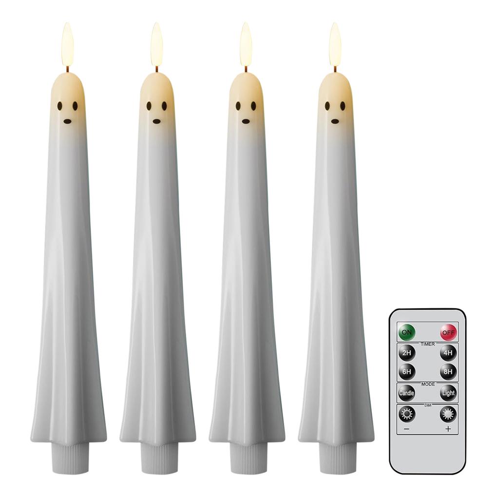 2/4/6 Pack Ghost Taper Candles Battery Operated Flameless Taper Candles with Remote and Timer Halloween Dinner Decoration Indoor