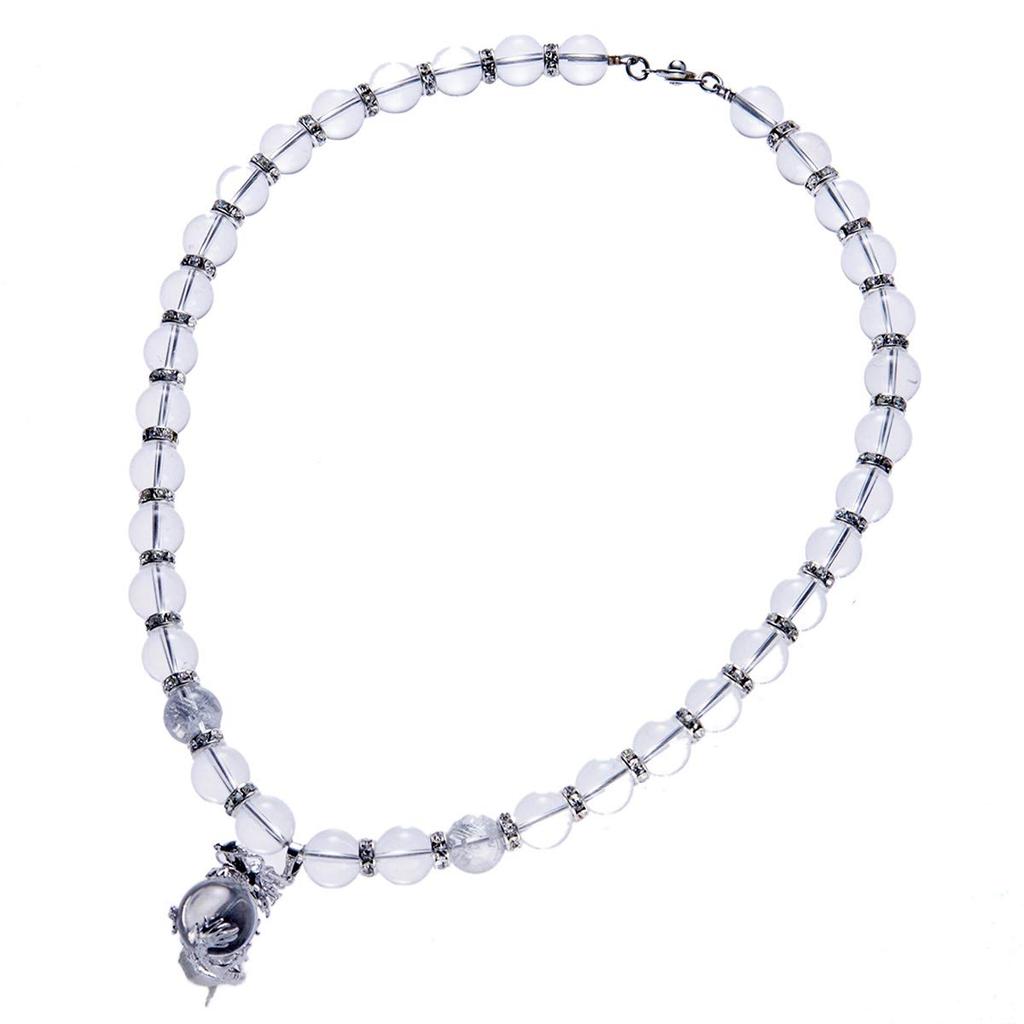 [Секи-Ки] Сияющий Императорский Дракон Кристальный Кулон 4A Серебро Резной Кристалл Императорского Дракона 12мм Серебряные Рондели Четки 249