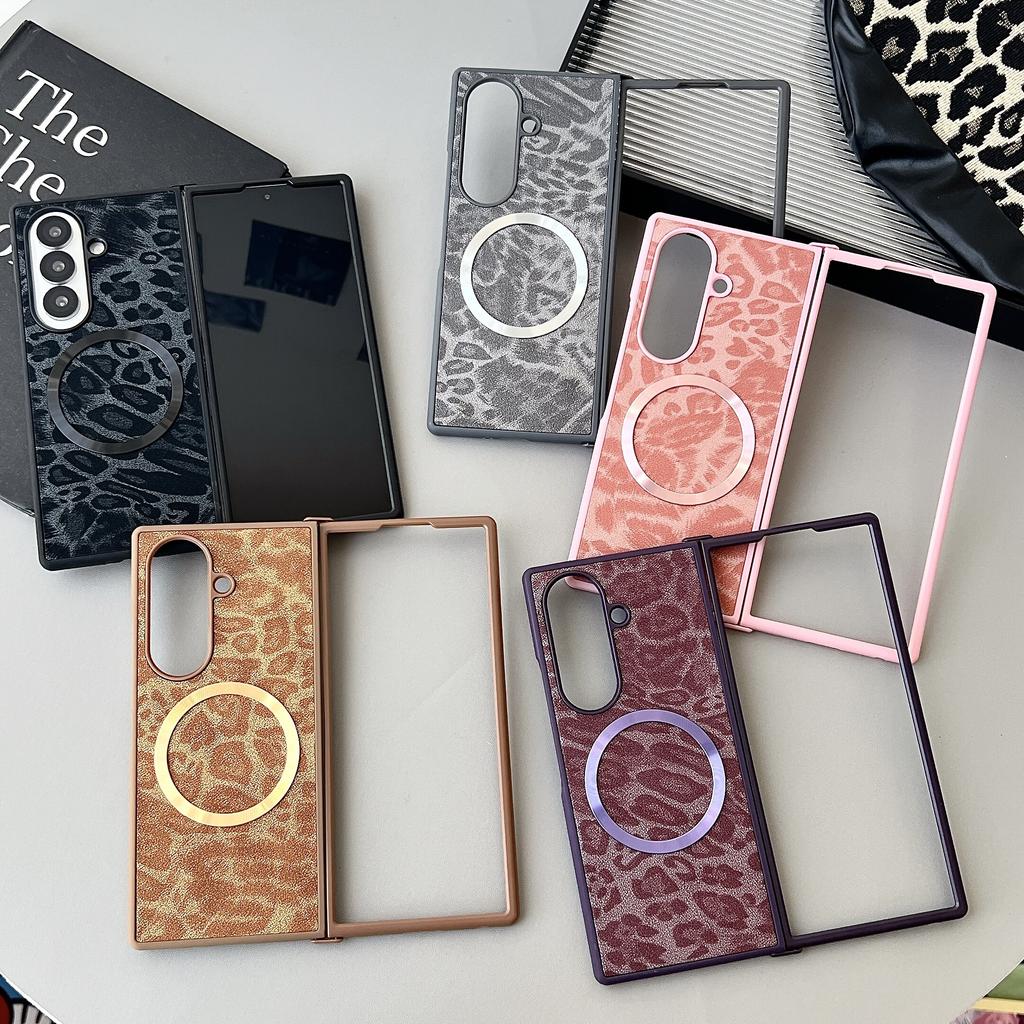 Чехол для Samsung Galaxy Z Fold3 Fold4 Fold5 Fold6 Fold7 с задней кожей и противоударным бампером для телефона MagSafe