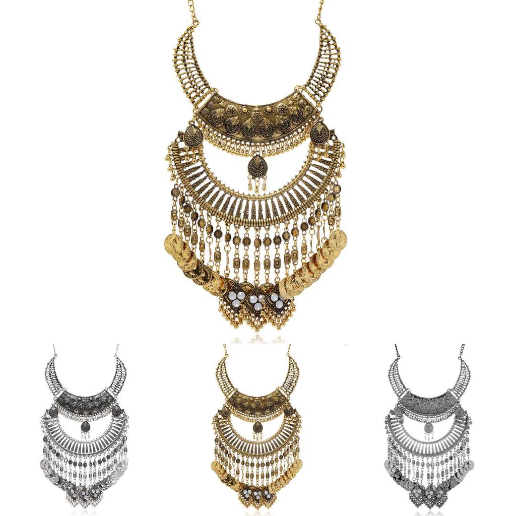 Богемское колье с подвеской-монетой из сплава и цепочкой-водой для женщин, ретро-аксессуары