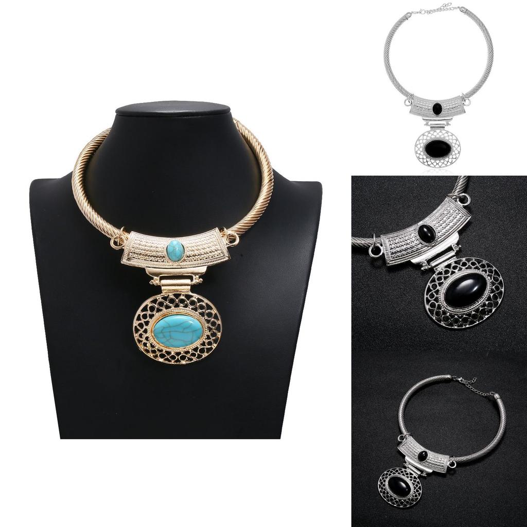 Stylish Alloy Geometric Necklace With Turquoise Accents For Summer Casual Wear