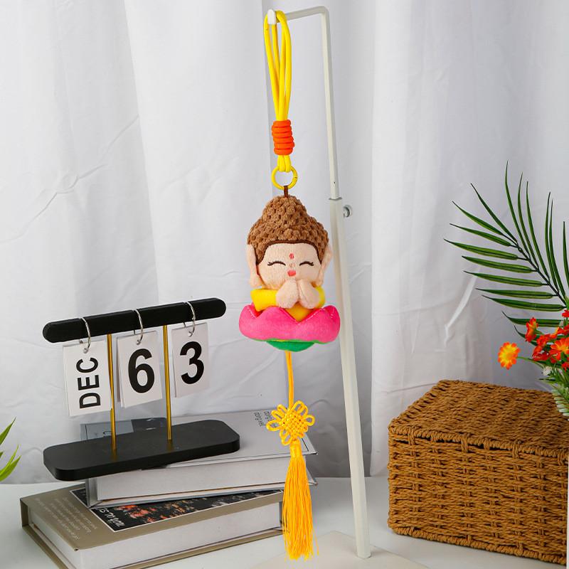 Soft Lotus Little Buddha Plush Figure With Keyring For Bag And Car Decoration
