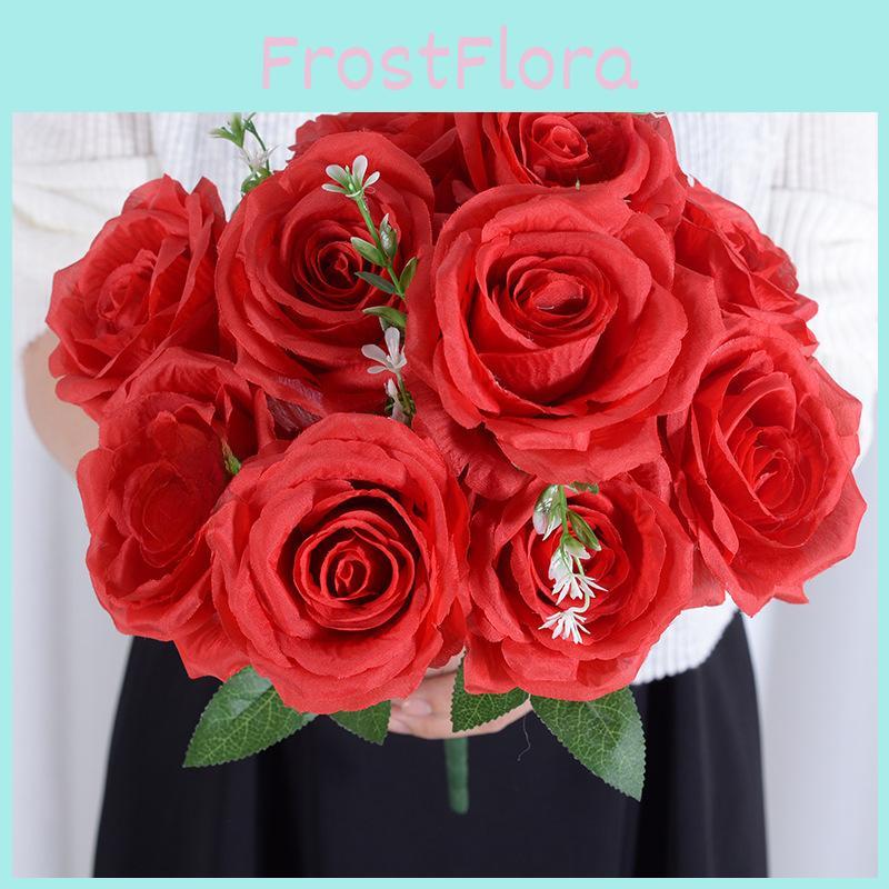 This set of ten faux rose bouquets features realistic silk flowers with detailed pouring craftsmanship for authentic appearance. crafted from durable silk material in vibrant colors including red, pink, white, gray, green, and champagne. These versatile artificial roses are ideal for wedding dcor, home accents, hotel decoration, outdoor events, or photography props. Easy to maintain, simply wipe clean with a damp cloth to keep them looking fresh and beautiful.