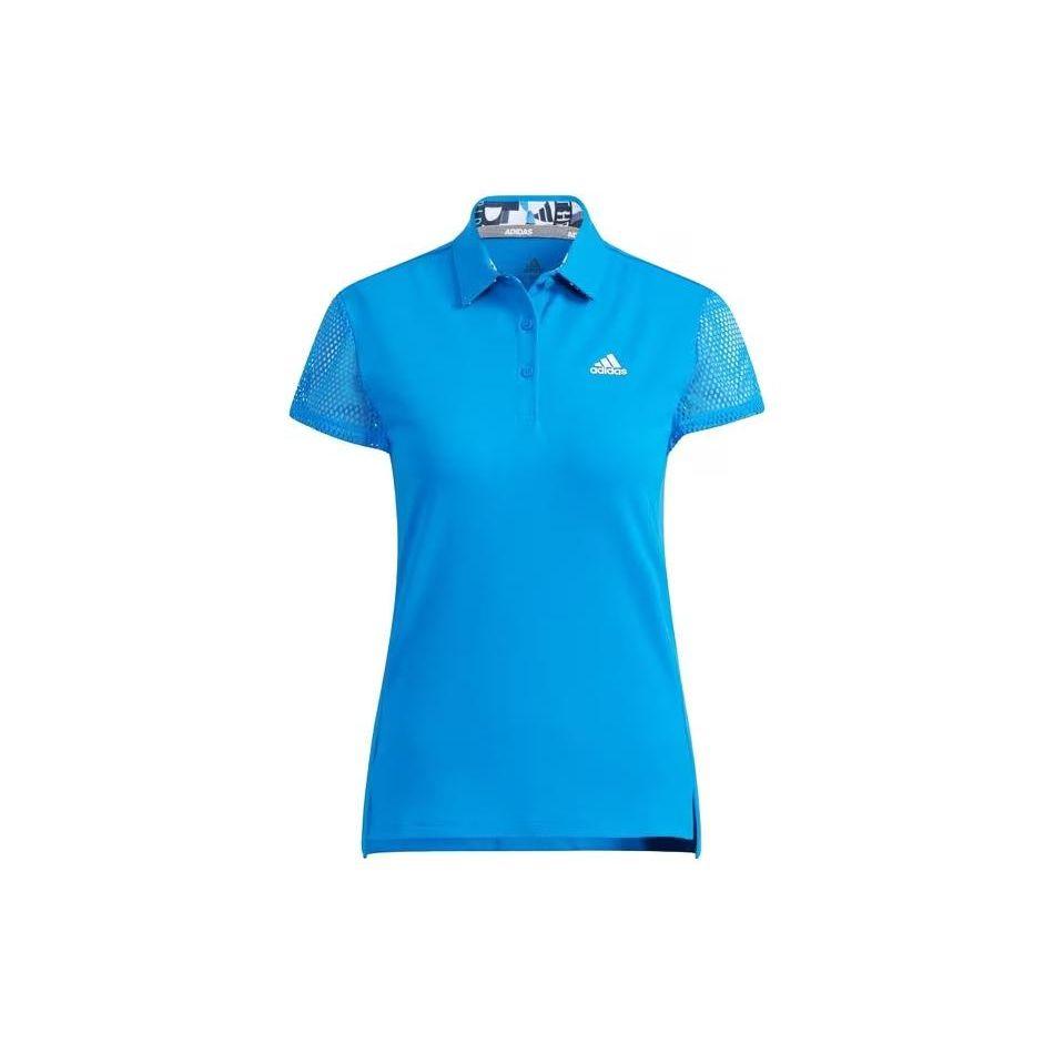 Adidas Однотонная рубашка поло с квадратным вырезом и короткими рукавами на пуговицах, женские топы, ярко-синие, HA0226