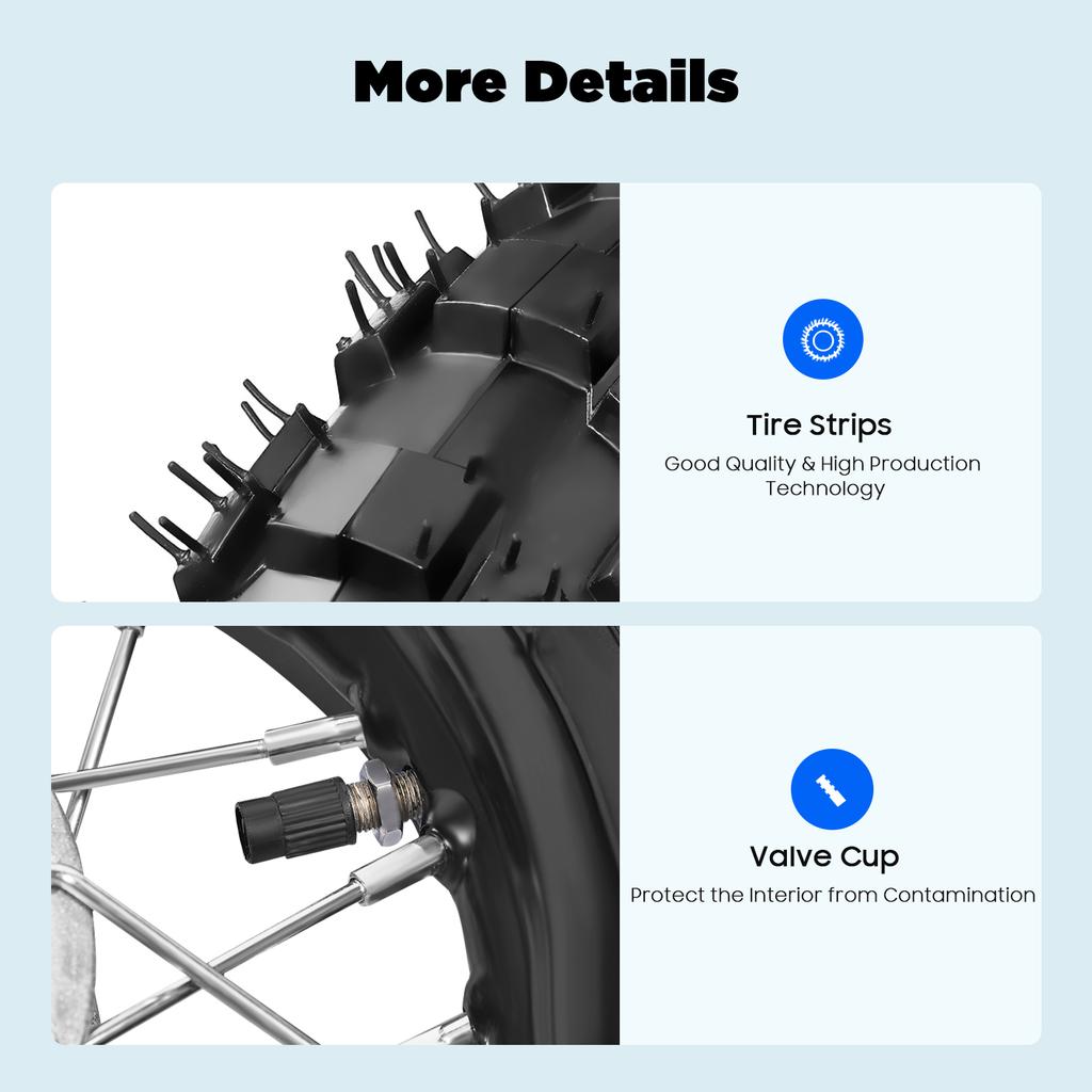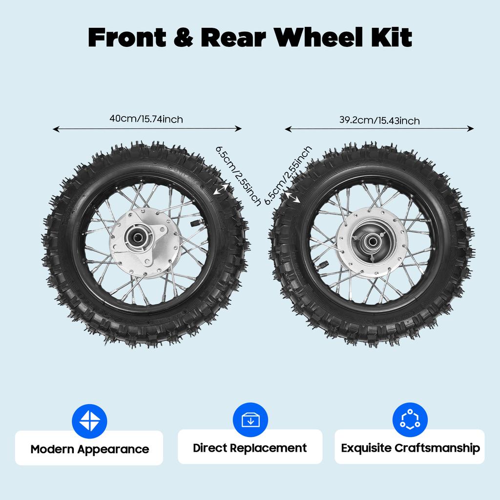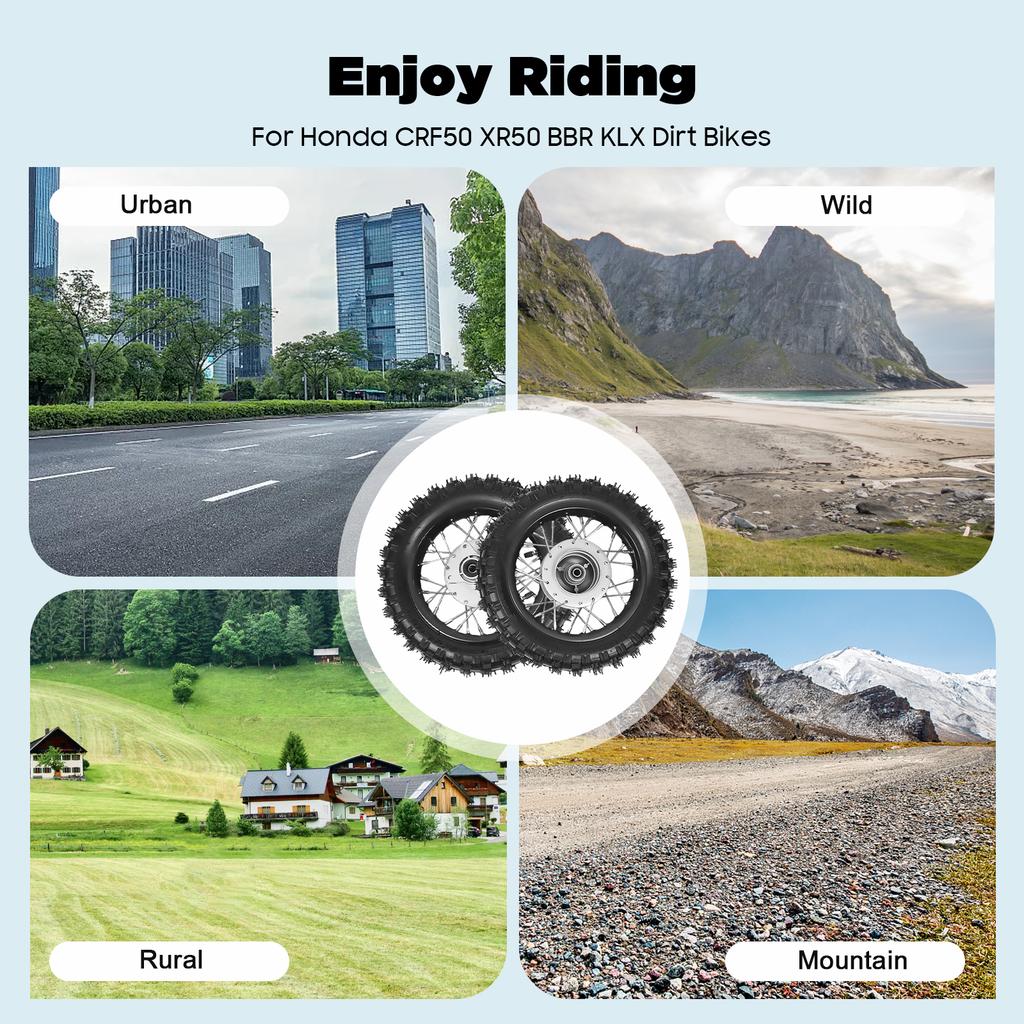 Alloy Wheel Set 2.5-10 for Honda CRF50 XR50 KLX BBR, Dirt Bike Tires with Chain