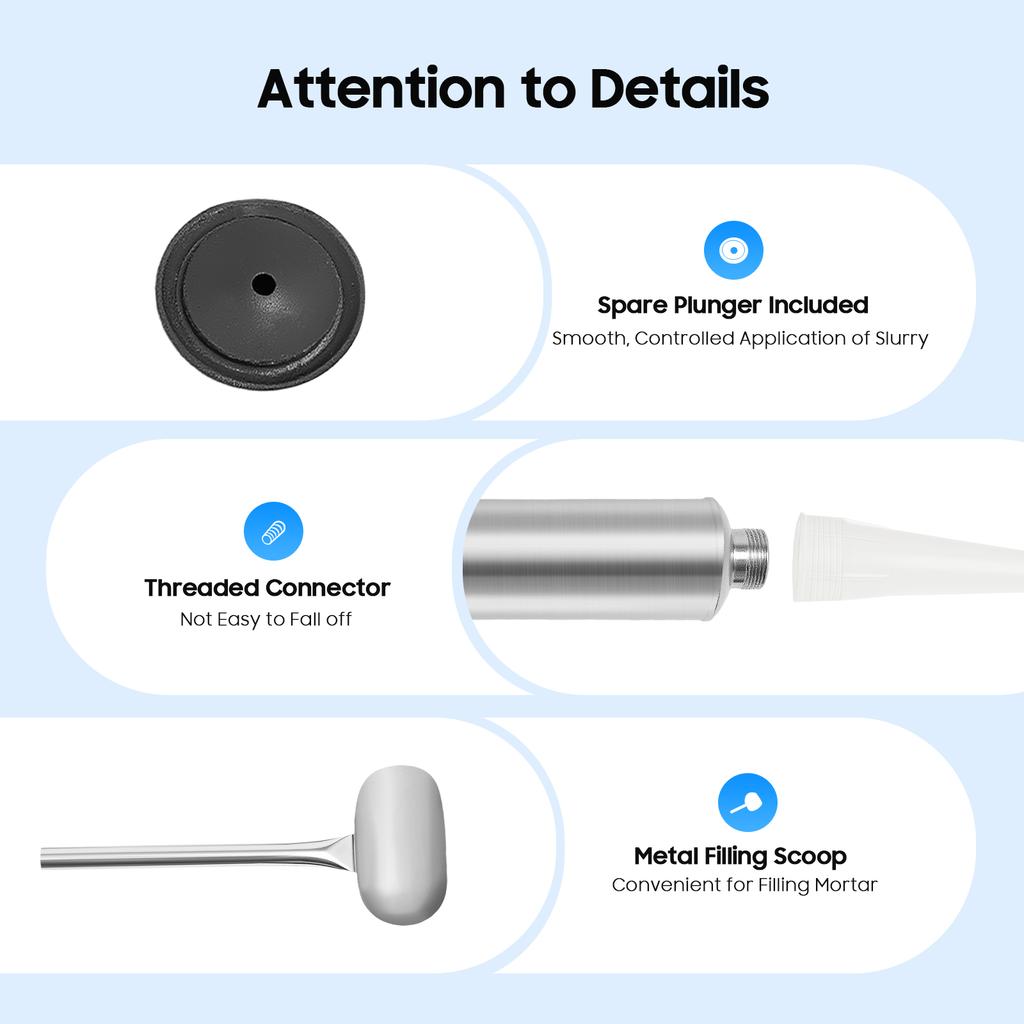 Professional Tile Grouting Gun Stainless Steel Caulking Tool with 3 Nozzles for Floor Wall Ceramic Gap Filling DIY Construction