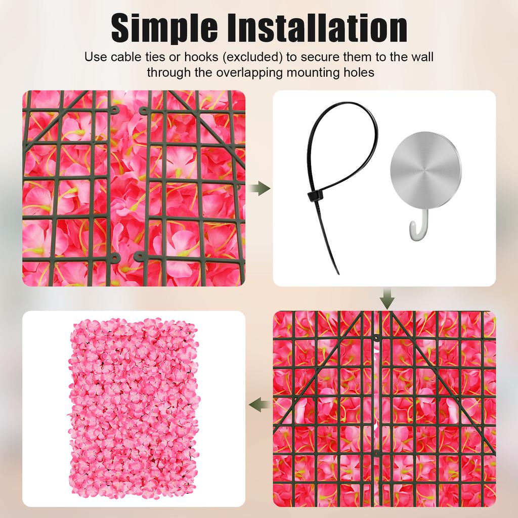 10 Pcs Pink Flower Wall Backdrop, Artificial Silk Flowers Panel for Wedding Party Birthday Decor, Romantic Photo Booth