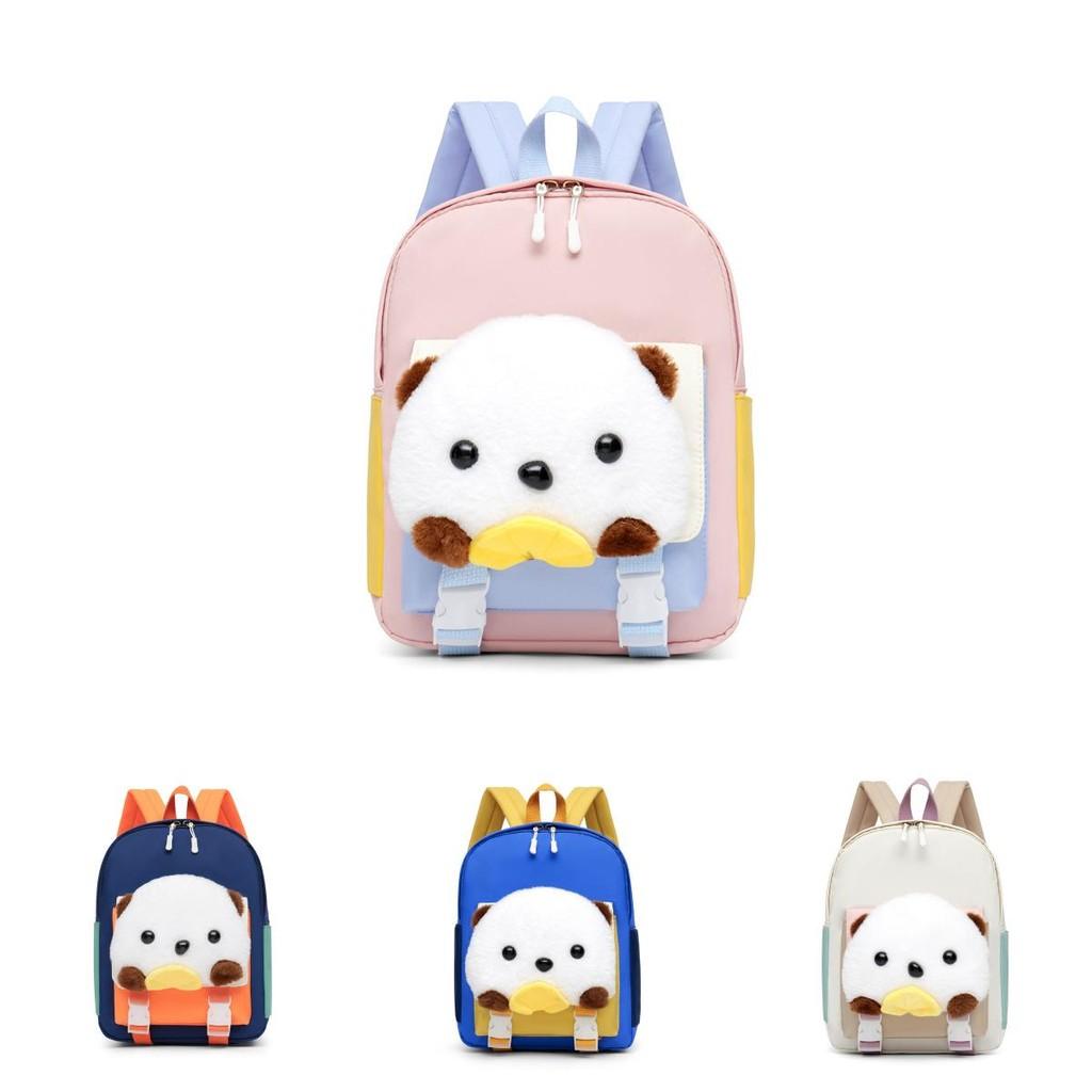Childrens Nylon Backpack With Animal Illustration And Air Cushion Straps For School Use