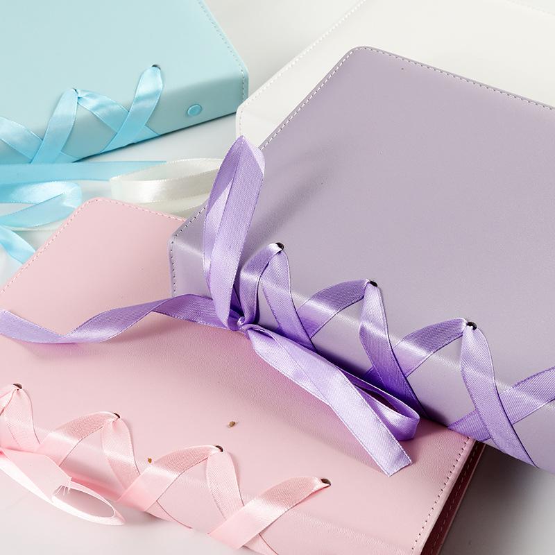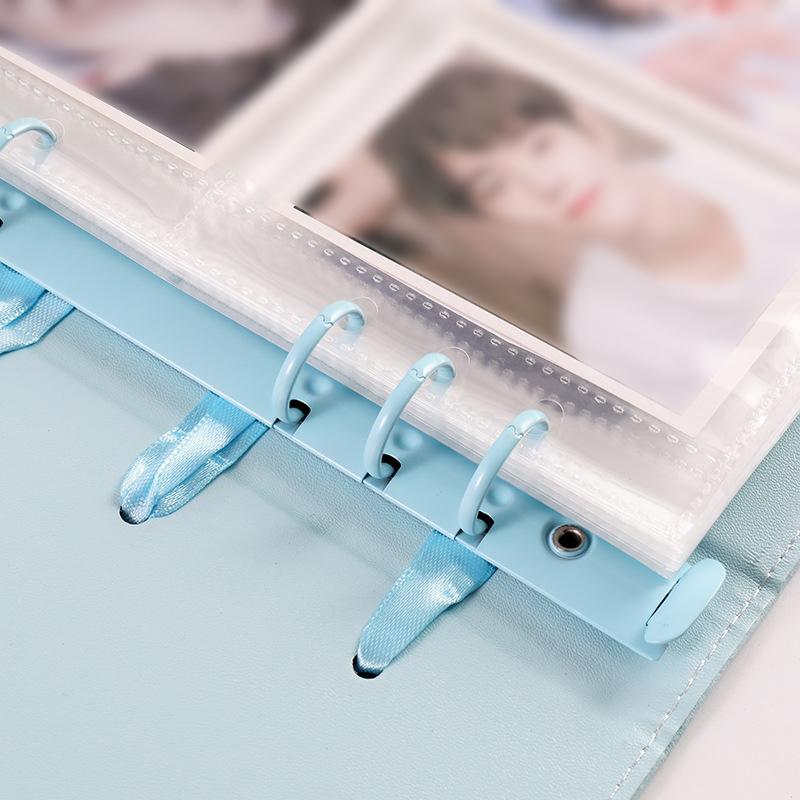 INS K-Pop Звезда Альбом-биндер формата А5 из ПУ кожи с держателем для фотокарточек, однотонный, коллекция для скрапбукинга, украшение с бантом