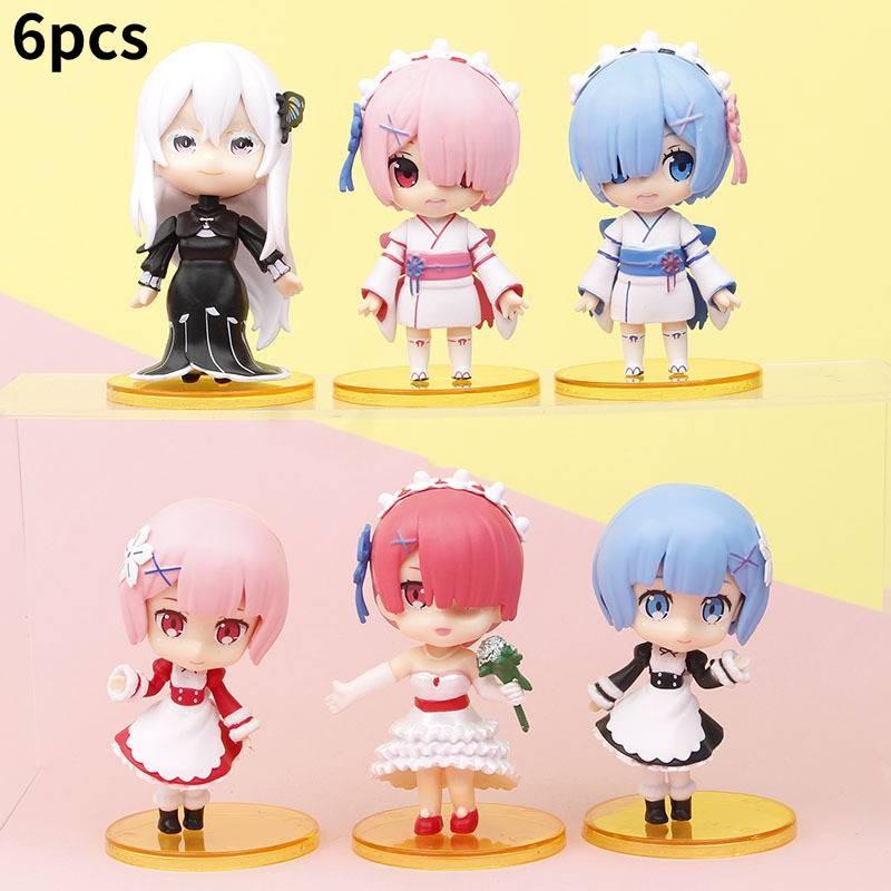 Стильный набор из 6 аниме-фигурок Рем и Рам из Re: Жизнь в альтернативном мире с нуля