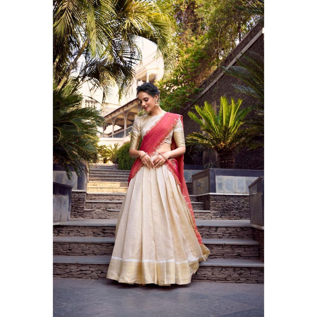 Лехенга чоли Элегантная золотая вышивка Зари Лехенга с мерцающей дупаттой Зари