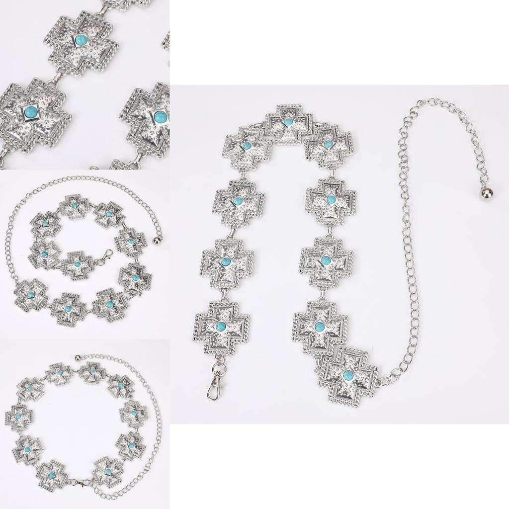 Эта высококачественная поясная цепочка в богемном стиле имеет металлическую конструкцию длиной 125 см и шириной 3 см, украшенную бирюзовыми камнями и заметным кулоном в виде креста.. Созданный для взрослых женщин, он предлагает винтажную эстетику, подходящую для всех сезонов.. Легкий в носке, он дополняет праздничные или повседневные наряды.. Для ухода протирайте мягкой тканью.