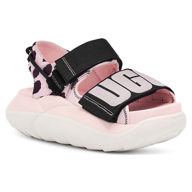 UGG La Cloud Series двухслойные легкие дышащие босоножки из коровьей кожи с леопардовым принтом модные женские босоножки ярко-розовые 1126951-PPBK