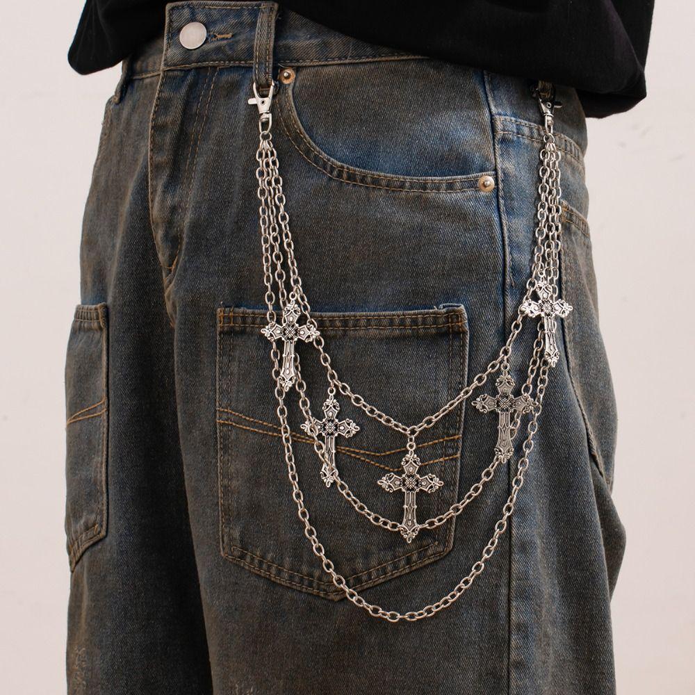 Цинк Цинк Цинковый сплав Панк Цепь для ремня Кисточка Кисточка Цепь для джинсов Панк Крест Цепь на талию Мужской