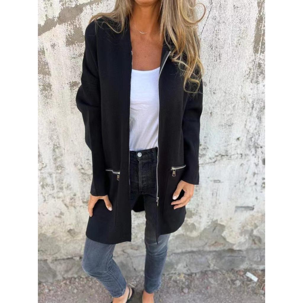 2025 Осень Зима Женская Однотонная Повседневная Толстовка на Молнии с Капюшоном