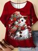 Элегантный красный рождественский топ с принтом снеговика для женщин, футболка с коротким рукавом, повседневная женская одежда для зимы и лета