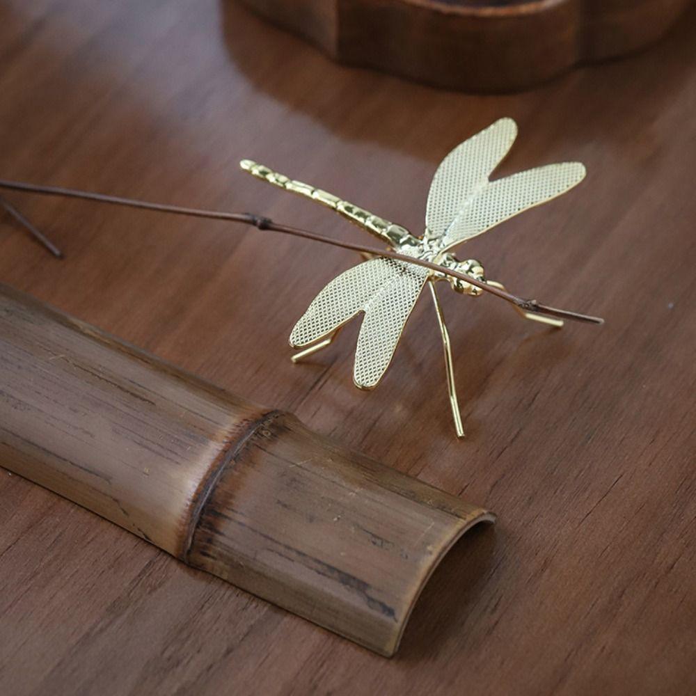 Маленькая фигурка стрекозы, винтажный металл, шесть лапок, имитация стрекозы, 3D стрекоза, подставка для ручек, чайная церемония