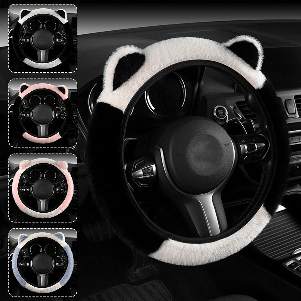 Зимний Мультяшный Плюшевый Чехол на Руль Автомобиля Теплый Универсальный Сезонный Нескользящий Аксессуар Милый Четыре Украшения Автомобиль НОВЫЙ