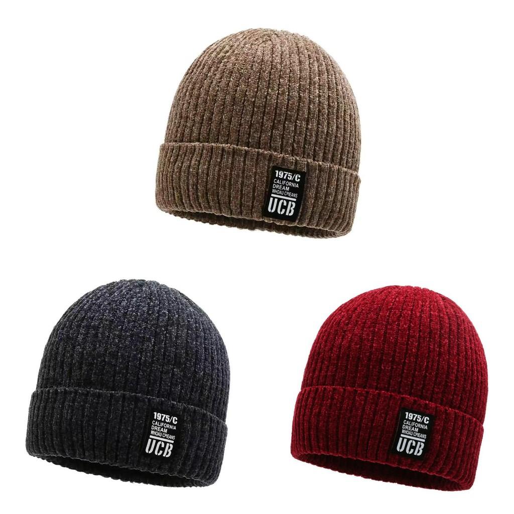 Универсальная и модная зимняя вязаная шапка-бини для мужчин из мягкой шенилловой ткани