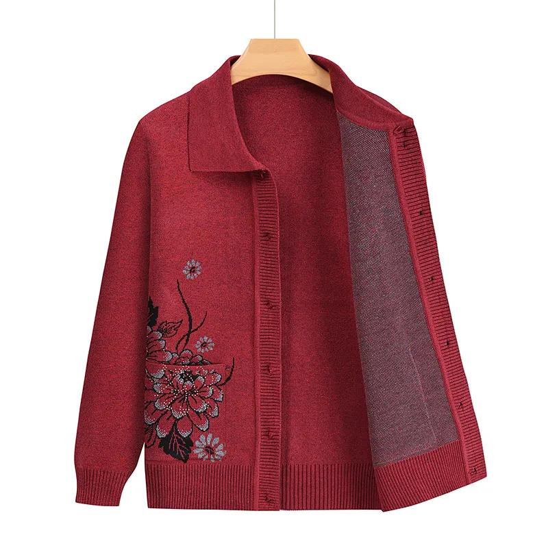 Распечатать свитер с длинными рукавами для женщин среднего возраста и пожилых матерей, весна-осень, трикотажная рубашка с низом, кардиган для бабушки, размер плюс