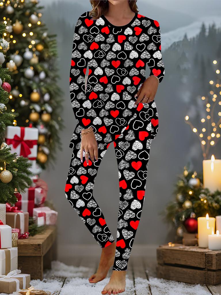 Евро-американская мода 3D принт "Любовь" Женский всесезонный комплект из двух предметов: футболка с длинным рукавом + длинные брюки. Идеальный подарок на Новый год и Рождество