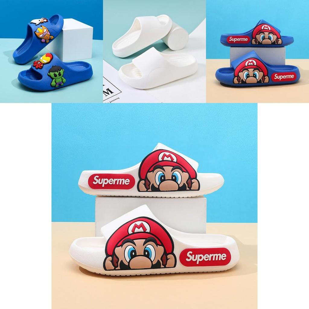 Дышащие и нескользящие детские домашние тапочки для мальчиков с забавными рисунками Марио и супергероев