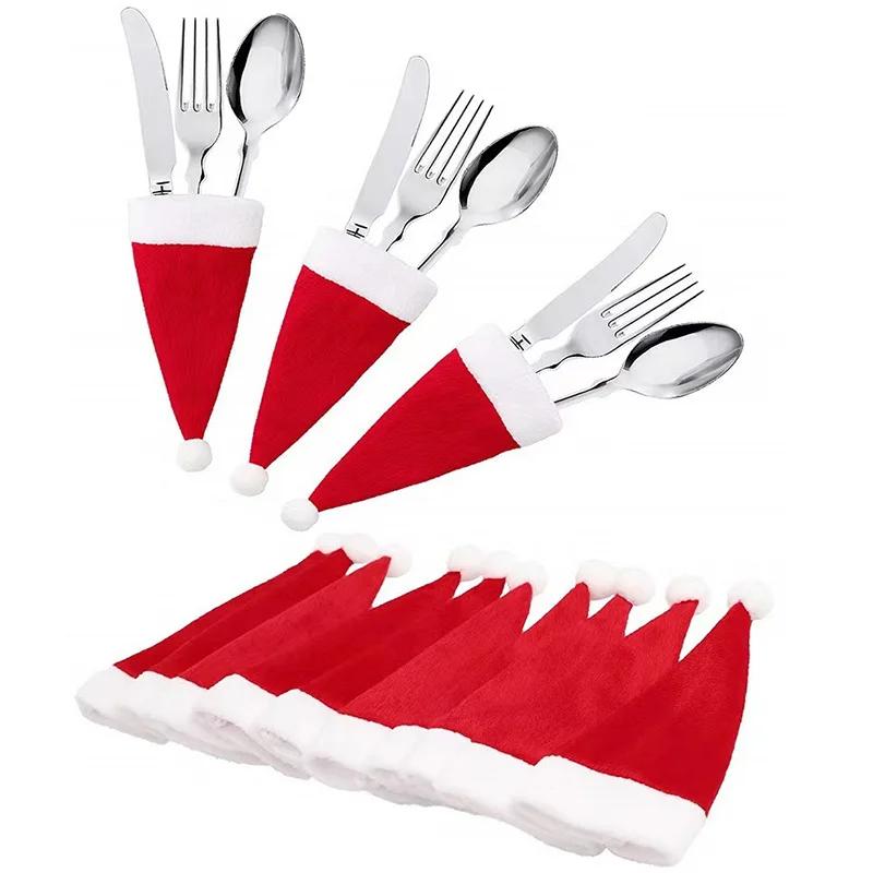 10/20 шт. Рождественский держатель для столовых приборов, Рождественская шляпа, Чехол для вилки, ножа и столовых приборов, Украшение для вечеринки, Декор, Веселое Рождество