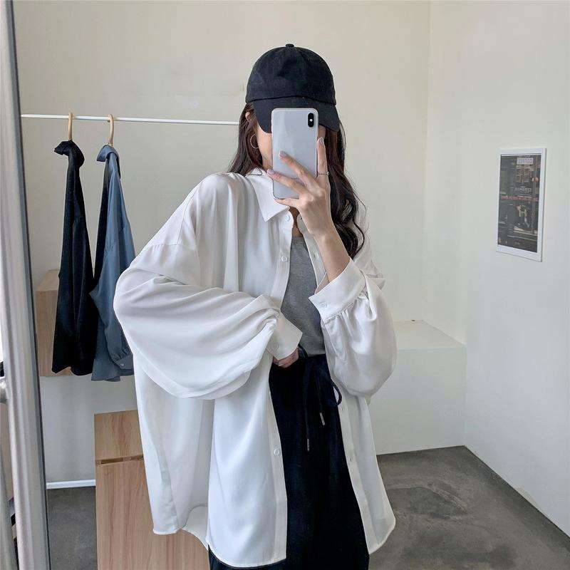 Весенне-летняя женская рубашка большого размера, элегантные блузки для женщин, рубашка с рукавами-фонариками, пальто средней длины, женская туника