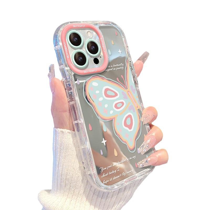Для чехла для мобильного телефона IPhone 15 для IPhone 14 Promax Расписанная вручную бабочка 13 Зеркальный Противоударный 7/8 Силиконовый Мягкий край X