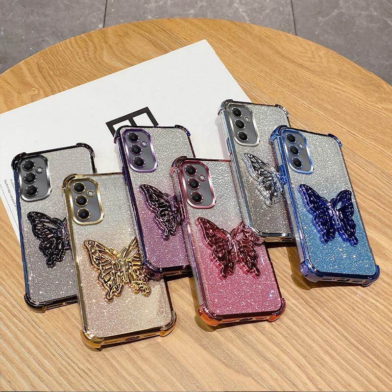 Plating Shockproof Butterfly Holder Phone Case For Samsung Galaxy A06 A16 A05 A05S A15 A25 A35 A55 A54 A53 5G Glitter Soft Cover — купить товар онлайн с бесплатной доставкой по всему миру!