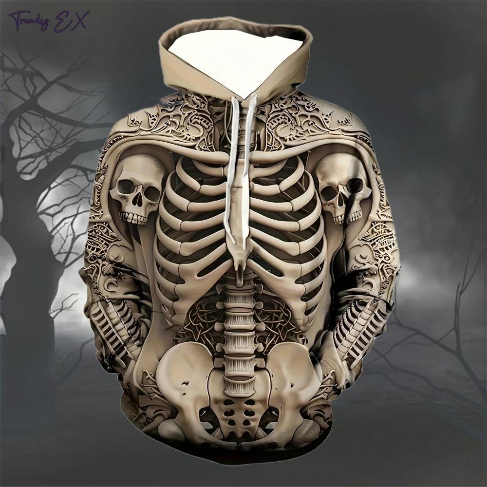 Толстовки с цифровым принтом черепа для мужчин, модные уличные осенние графические худи, блузка, удобные, дизайн с карманом-кенгуру, мужская одежда