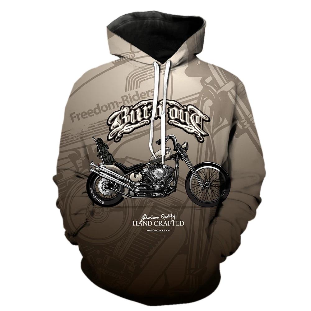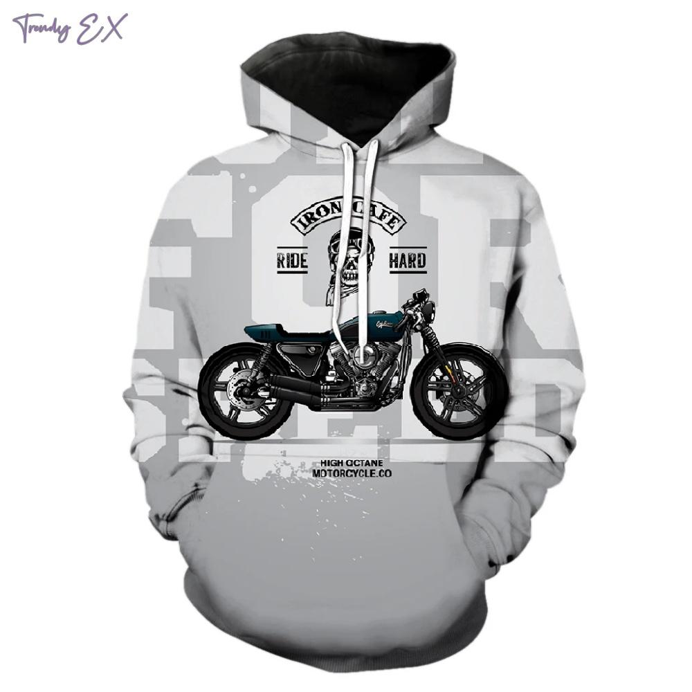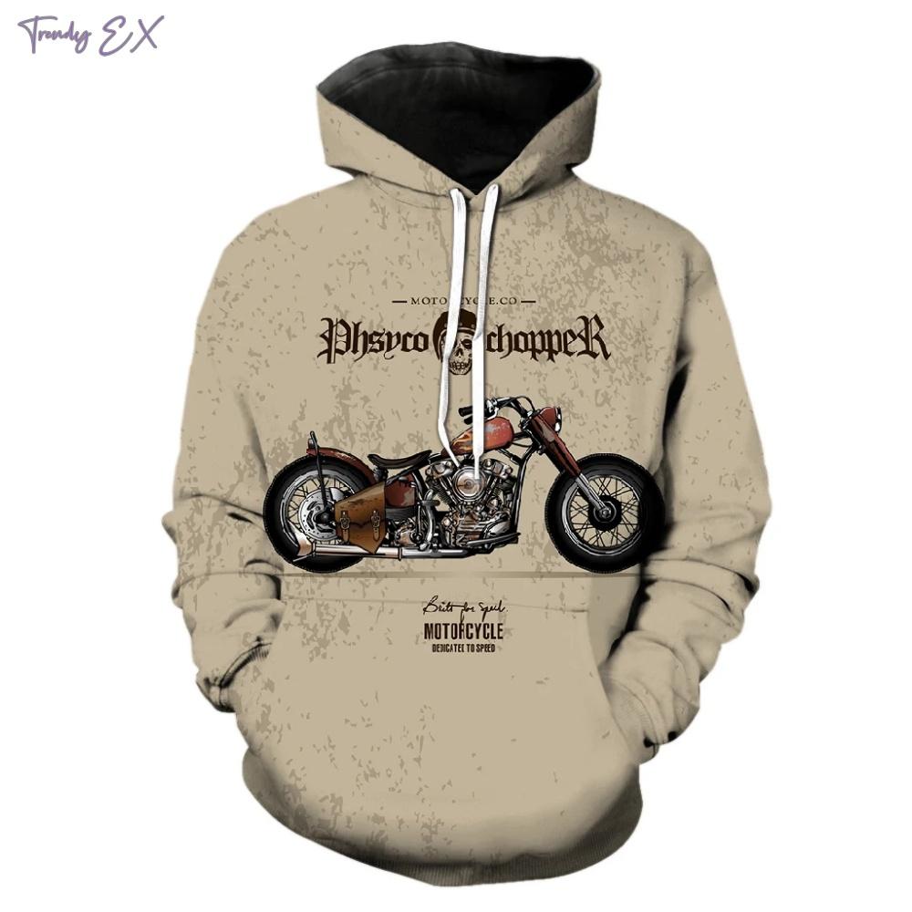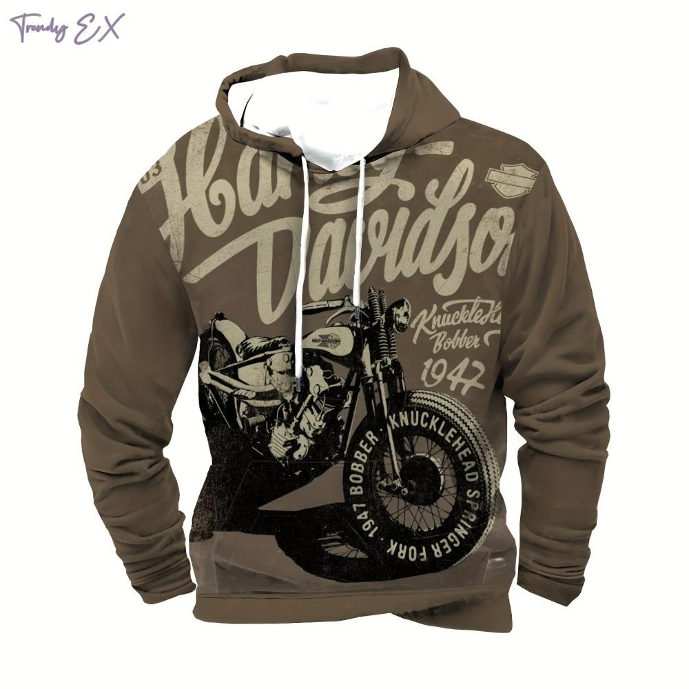 Мужской свитшот с винтажным принтом мотоцикла, уличная мода, графические худи, комфортный карман, длинный рукав, худи оверсайз, одежда