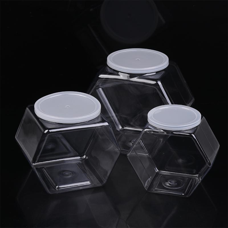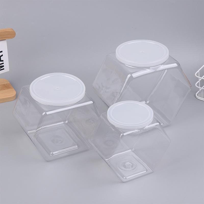 Портативная прозрачная шестигранная банка для конфет и печенья, пластиковые упаковочные банки, герметичные крышкой, контейнер для хранения продуктов, кухонные принадлежности