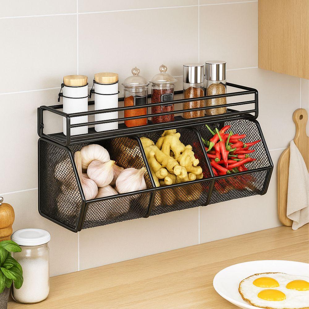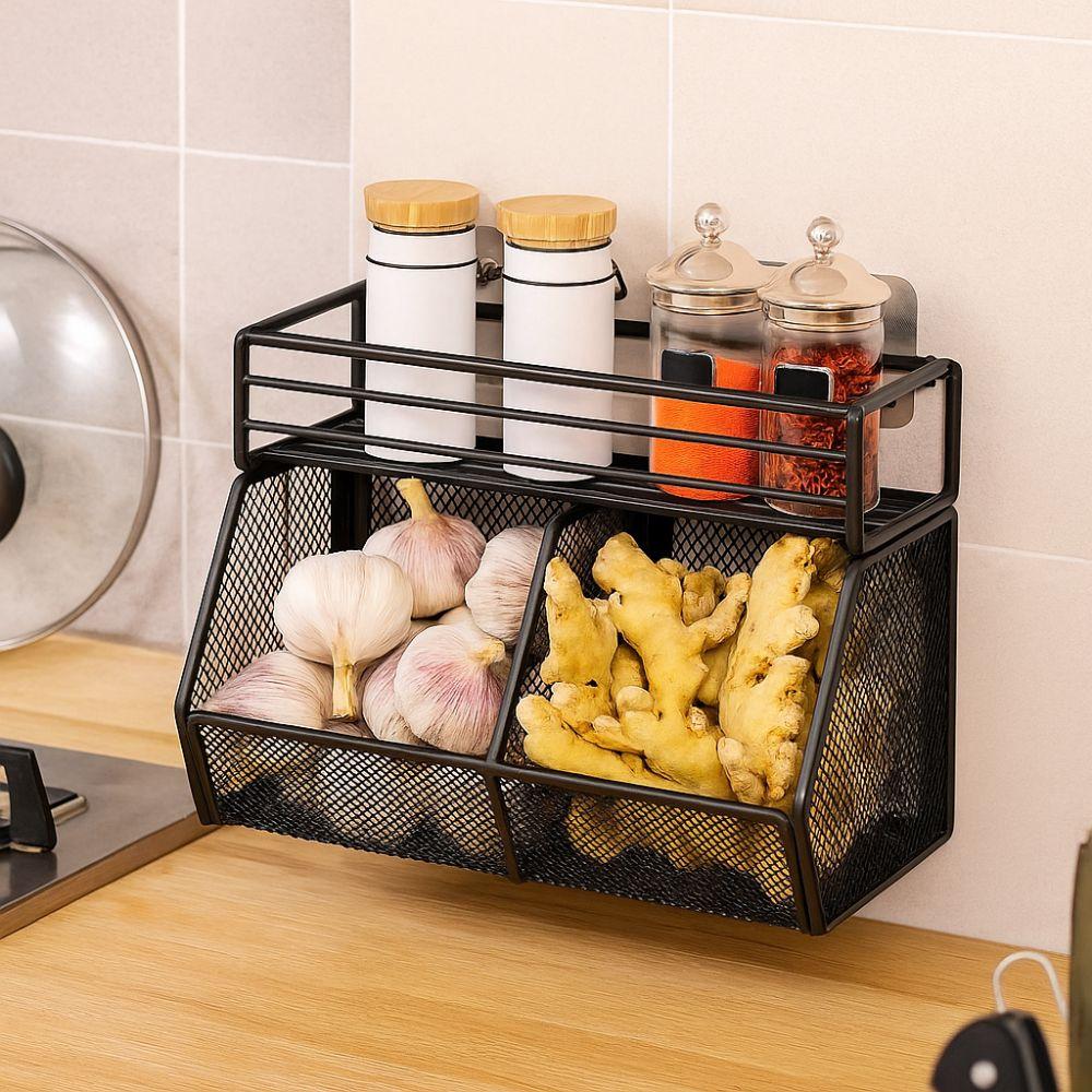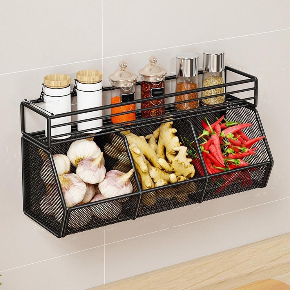 Корзина для слива овощей из углеродистой стали, настенная полка для лука, имбиря, чеснока, сортировка ингредиентов