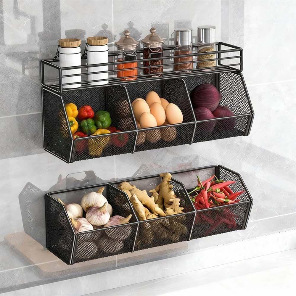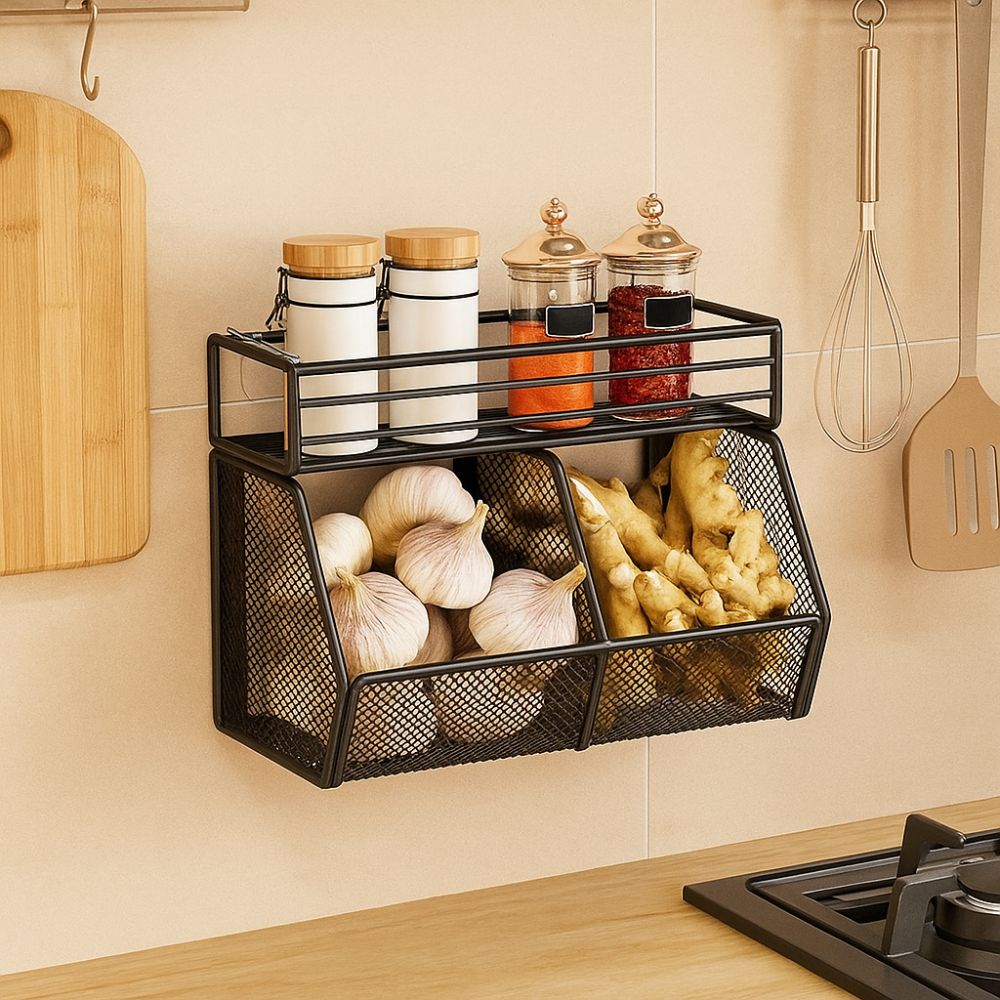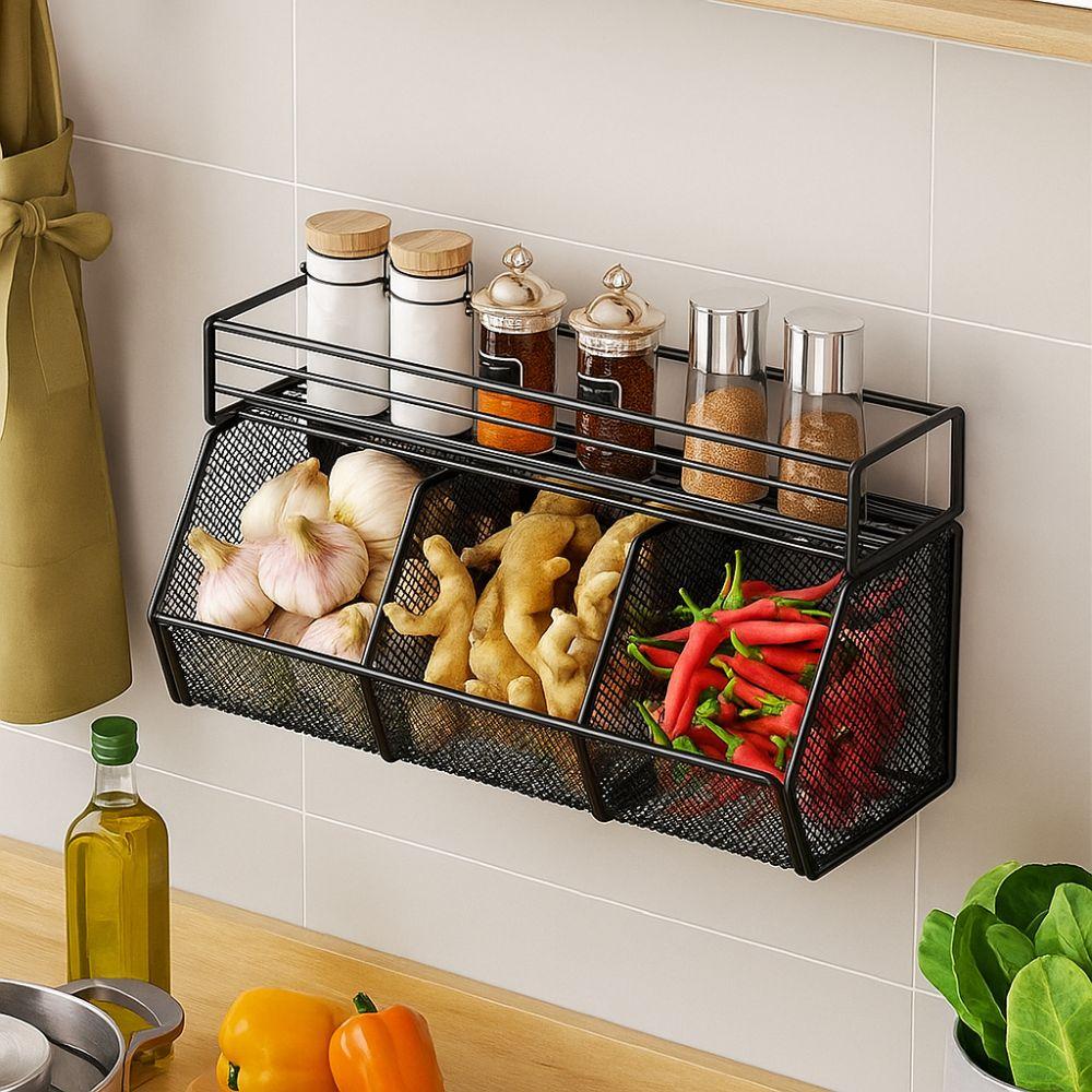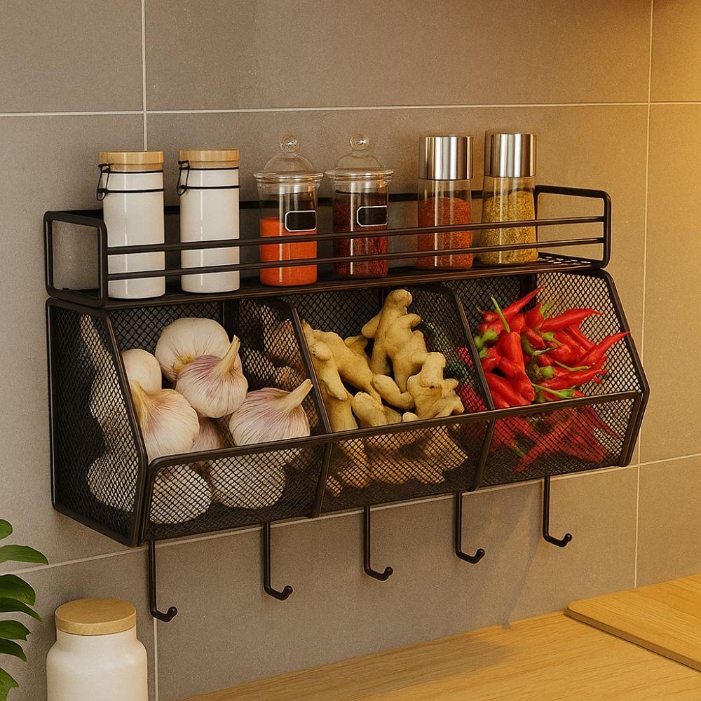 Корзина для слива овощей из углеродистой стали, настенная полка для лука, имбиря, чеснока, сортировка ингредиентов